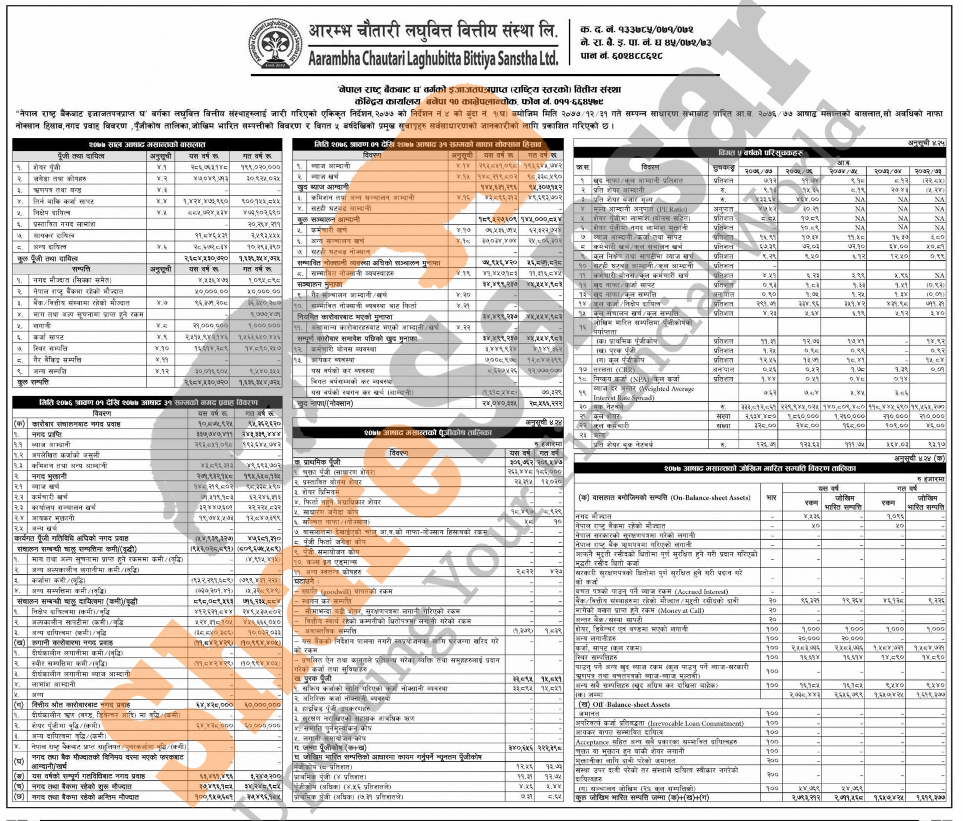 Aarambha Chautari Laghubitta Bittiya Sanstha Limited has published its annual financial highlights of the fiscal year 2076/77.