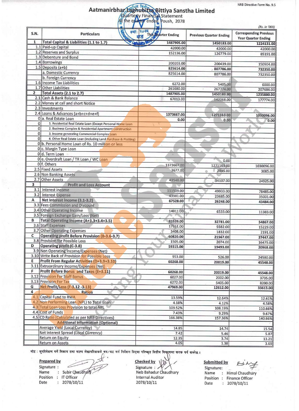 Aatmanirbhar Laghubitta Bittiya Sanstha Limited has posted a net profit of Rs 47.96 million and published its 2nd quarter company analysis of the fiscal year 2078/79.