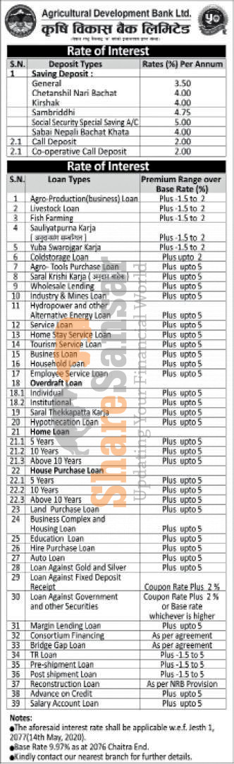 Agricultural Development Bank Limited has published a notice regarding new interest rate.