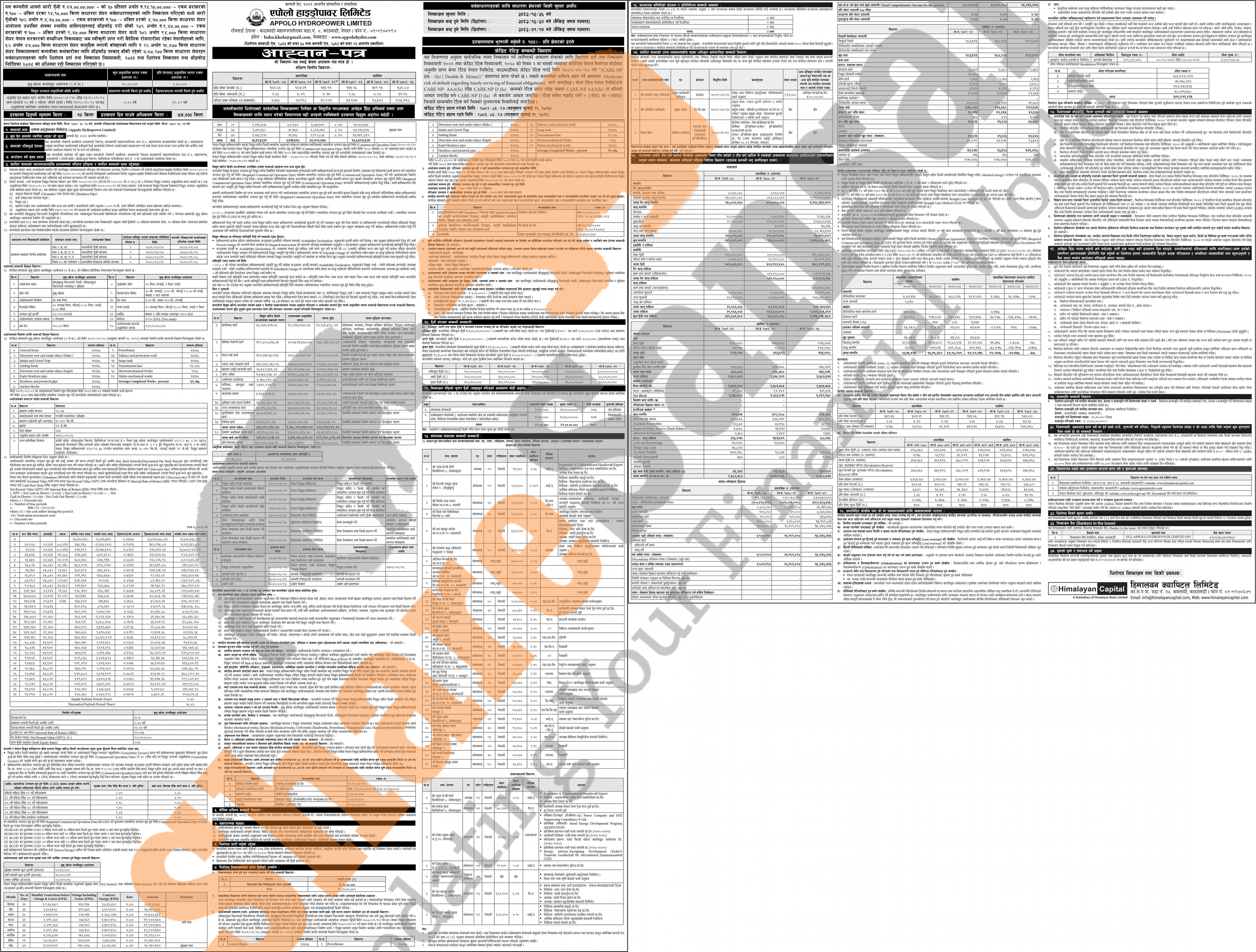Appolo Hydropower Limited has published an offer letter to issue 7,80,200 units IPO shares to the general public from 26th Chaitra to 30th Chaitra, 2082.