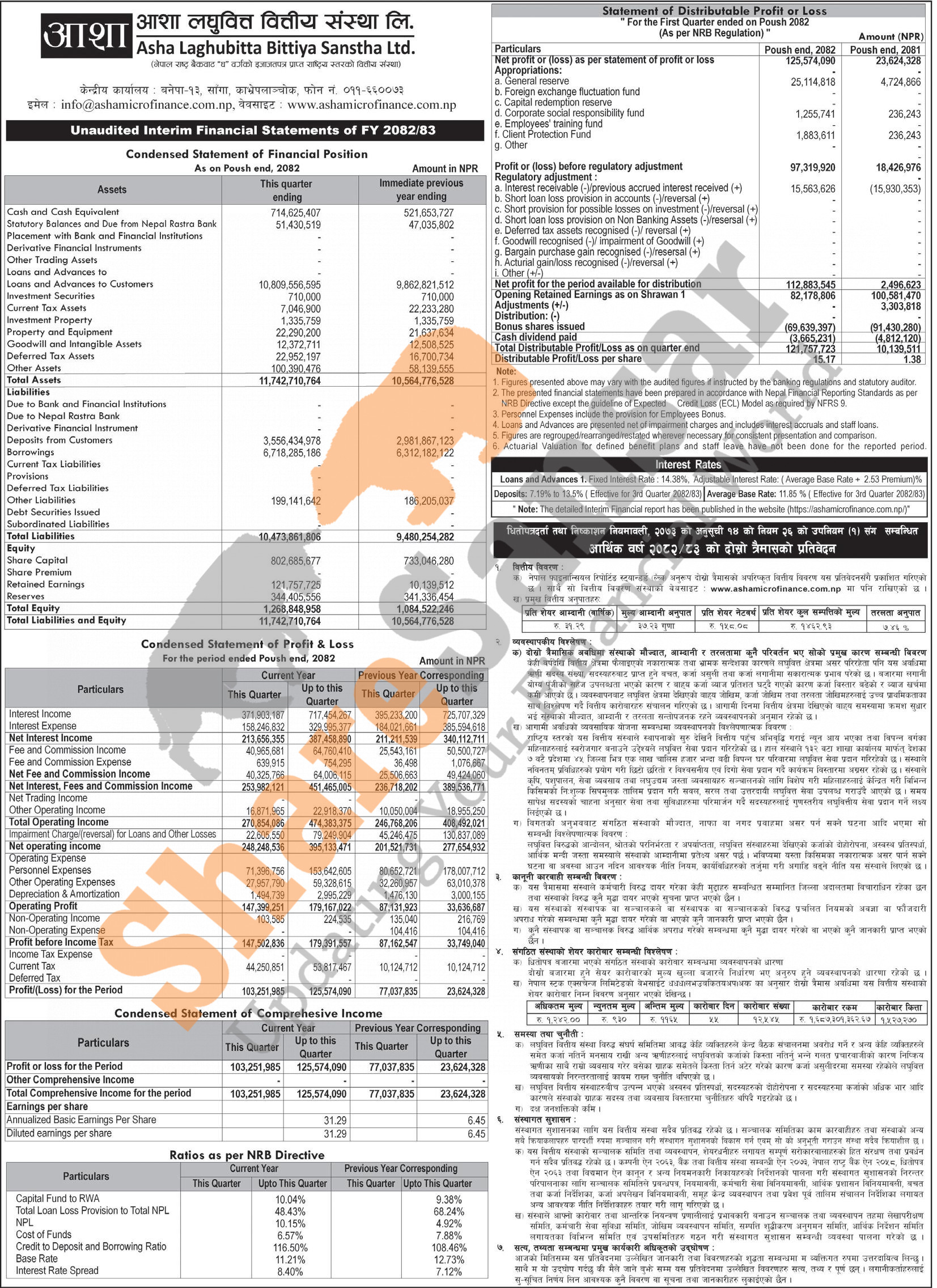 Asha Laghubitta Bittiya Sanstha Limited has posted a net profit of Rs 125.57 million and published its 2nd quarter company analysis of the fiscal year 2082/83.