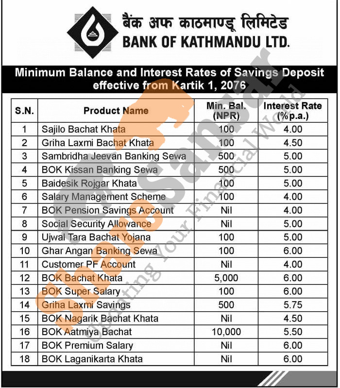 Bank of Kathmandu Limited has published a notice regarding new interest rate and its effective from 1st Kartik, 2076.