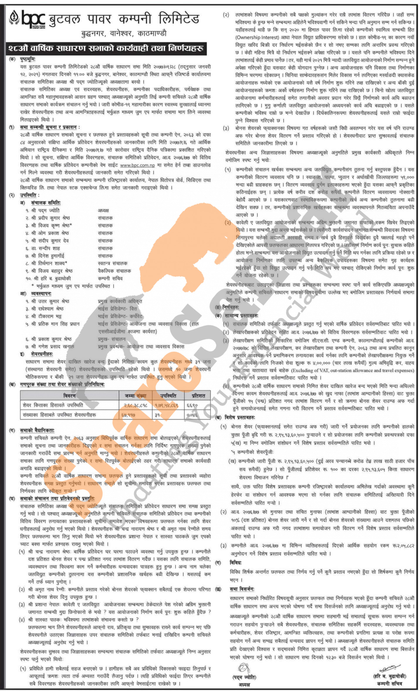 Butwal Power Company Limited has published the minutes of its 28th AGM.