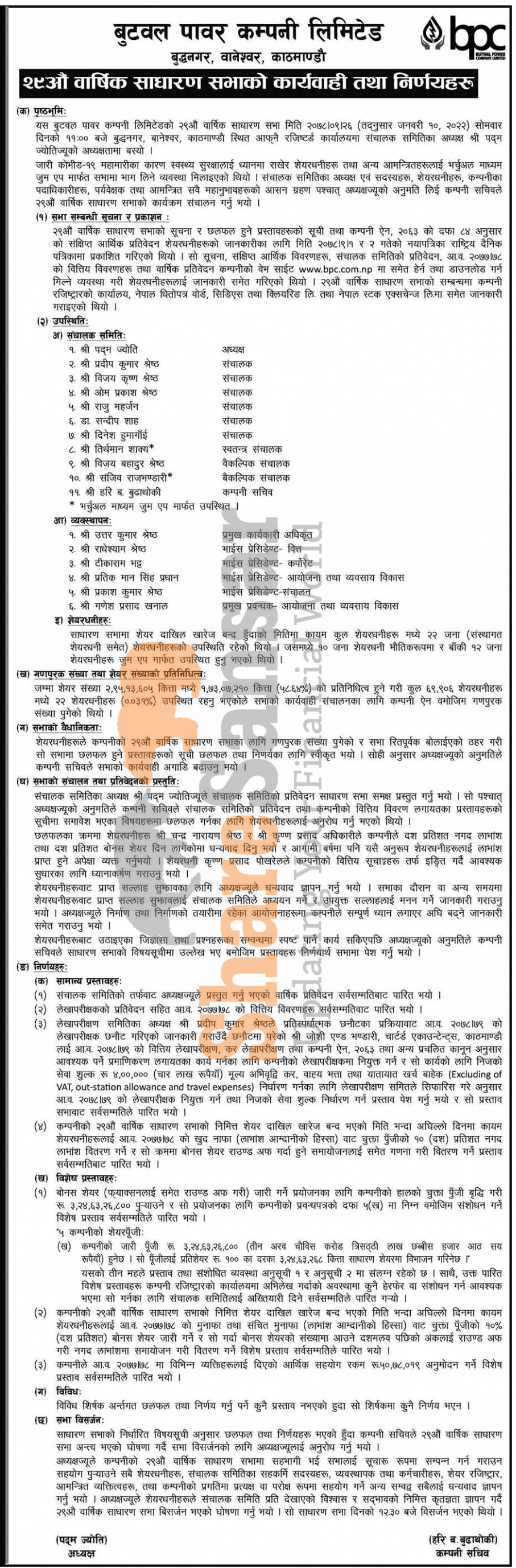 Butwal Power Company Limited has published the minutes of its 29th AGM.