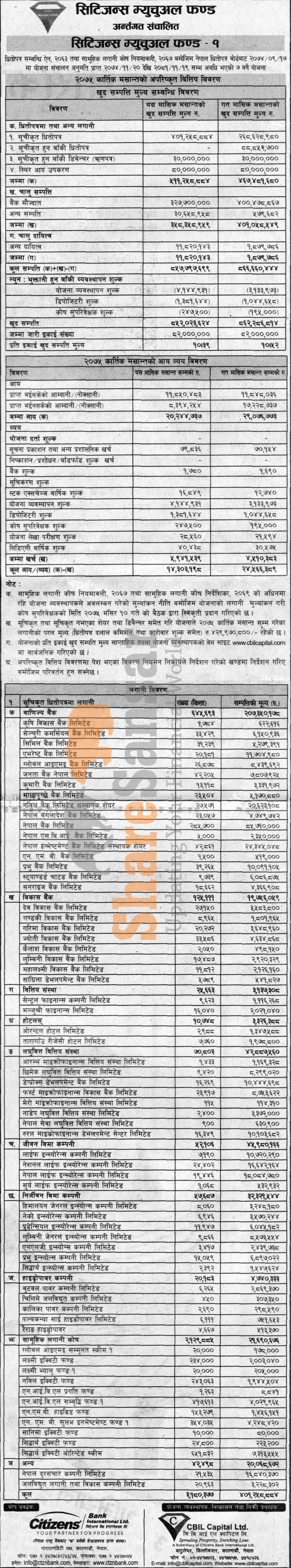 CBIL Capital Limited has published “Citizen Mutual Fund-1” Net Asset Value (NAV) till Kartik, 2075.