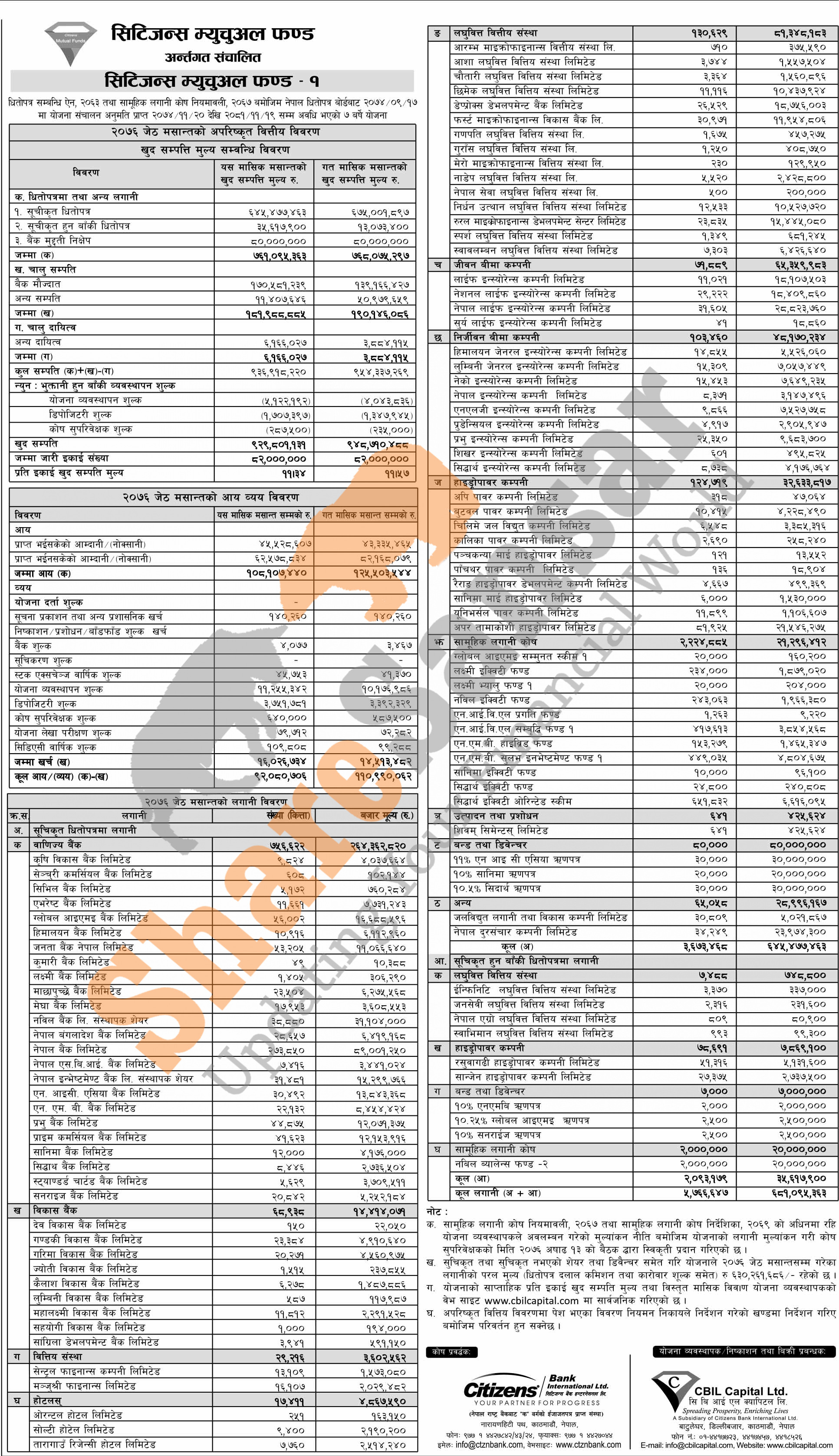 CBIL Capital Limited has published “Citizens Mutual Fund-1” Net Asset Value (NAV) till Jestha, 2076.
