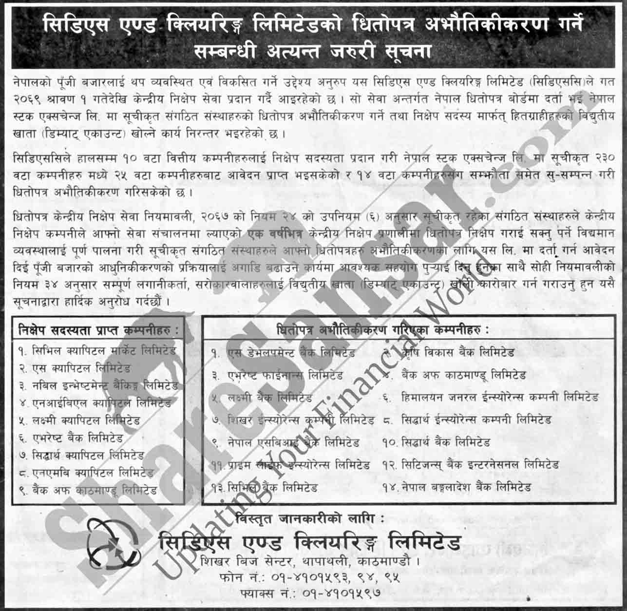 CDS and Clearing Limited has published a notice regarding dematerialization of share.