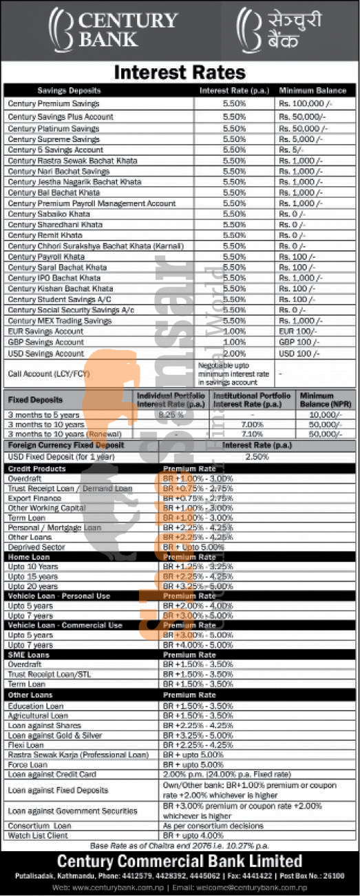 Century Commercial Bank Limited has published a notice regarding new interest rate.