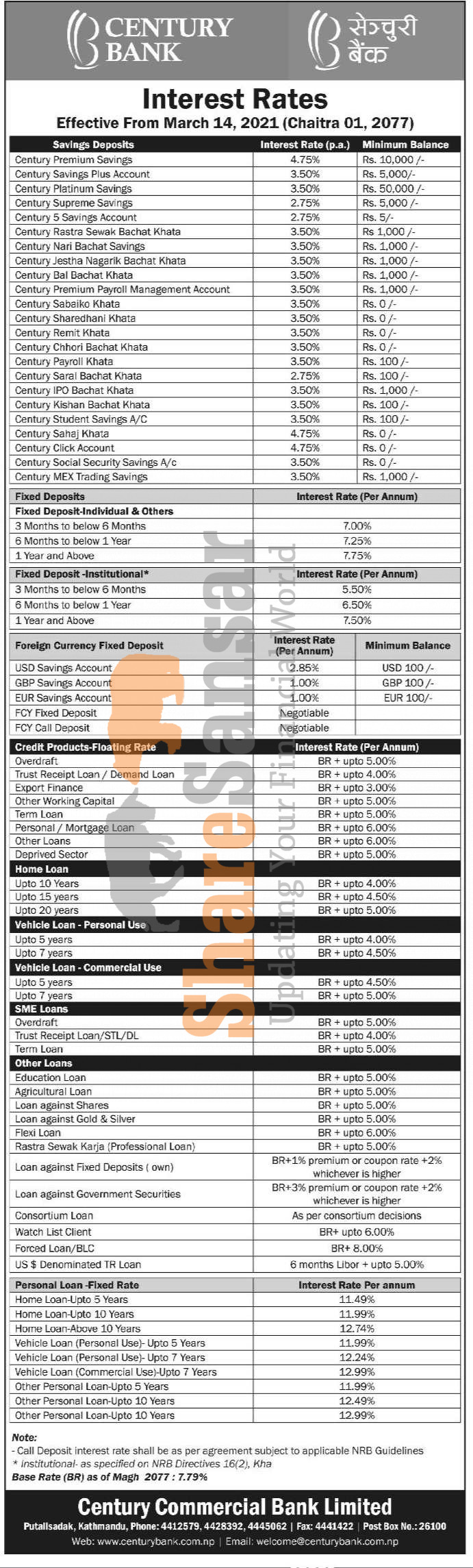 Century Commercial Bank Limited has published a notice regarding the new interest rate for deposit and loan products and it's effective from 1st Chaitra, 2077.