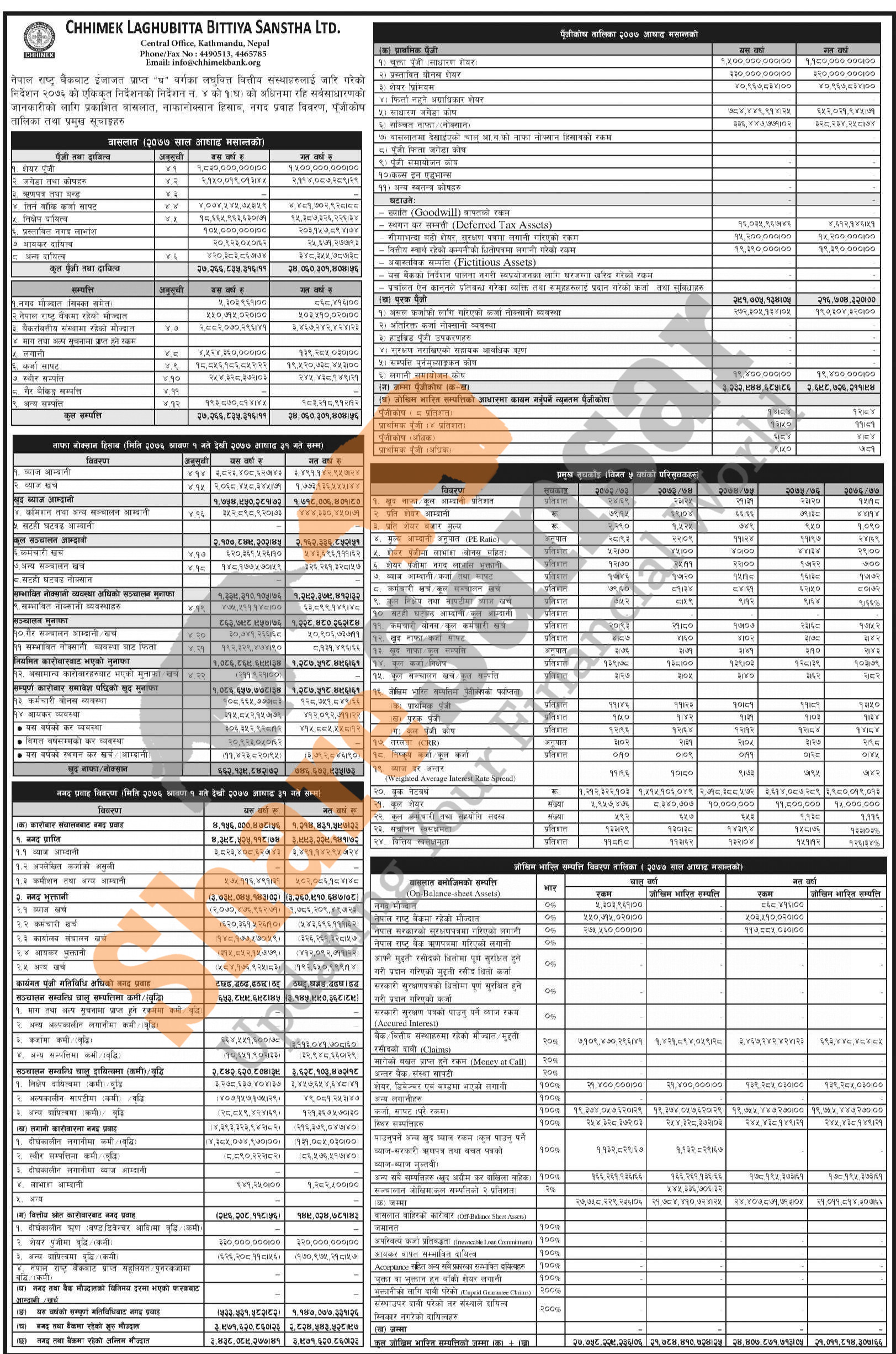 Chhimek Laghubitta Bittiya Sanstha Limited has published its annual financial highlights of the fiscal year 2076/77.