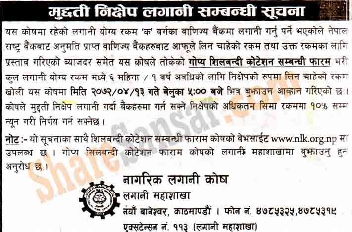 Citizen Investment Trust has published a notice seeking quotation of Fixed Deposit interest.