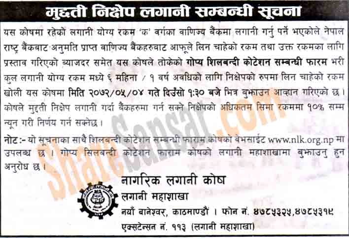 Citizen Investment Trust has published a notice seeking quotation of Fixed Deposit interest.
