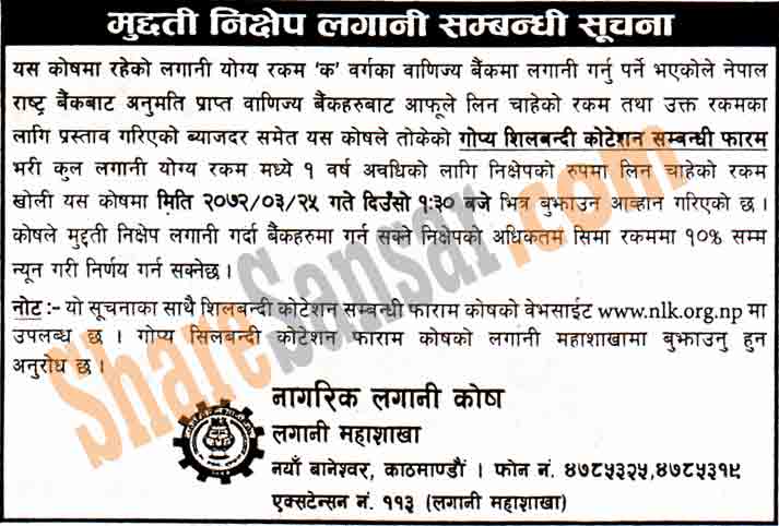 Citizen Investment Trust has published a notice seeking quotation of Fixed Deposit interest.