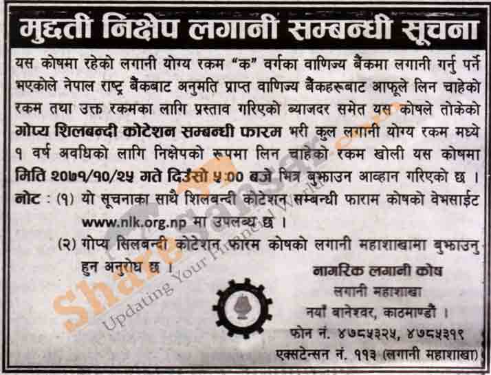 Citizen Investment Trust has published a notice seeking quotation of Fixed Deposit interest.