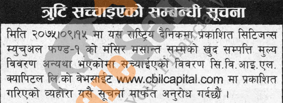 Citizen Mutual Fund-1” has amended its Monthly Net Asset Value (NAV) notice.