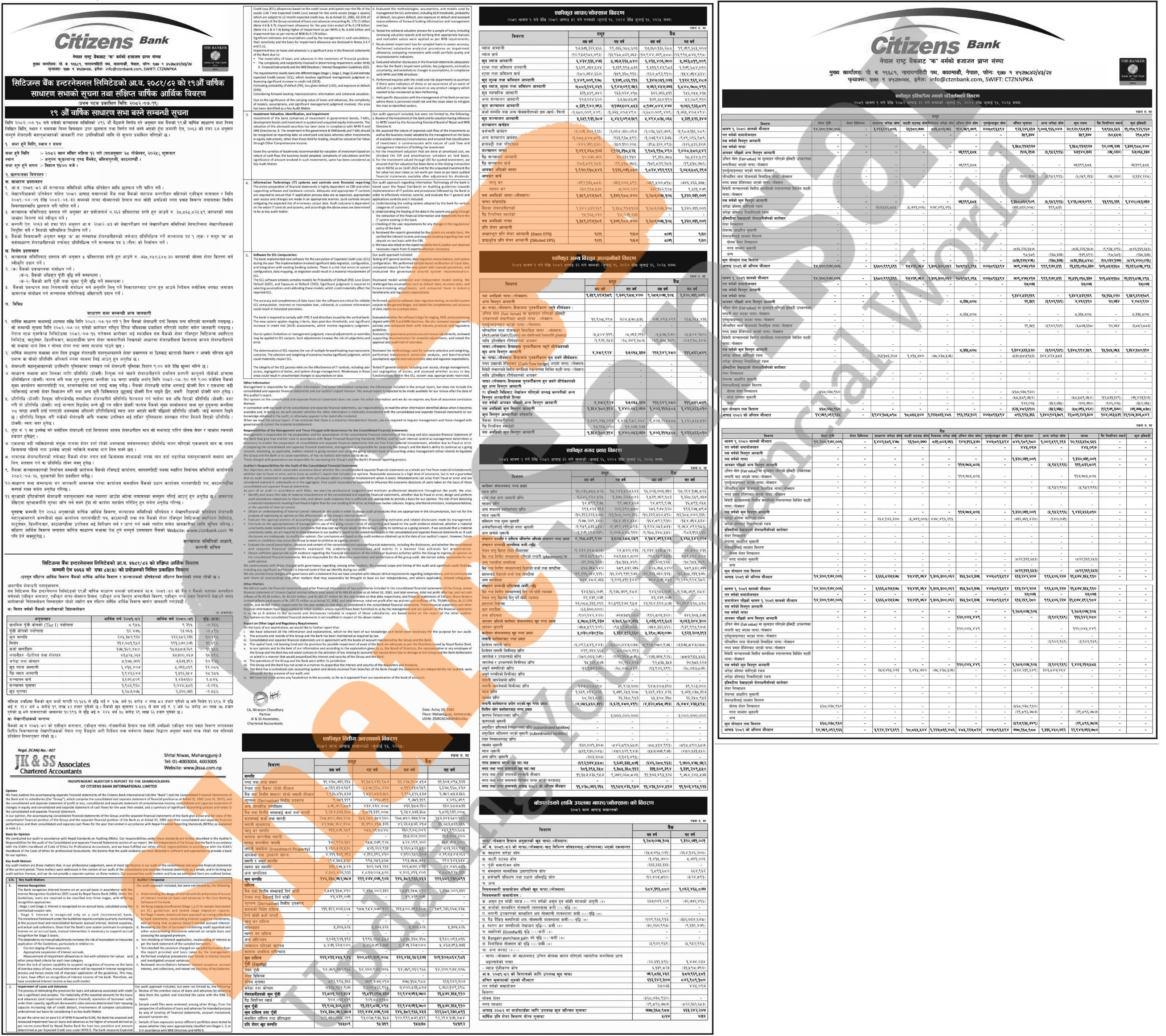 Citizens Bank International Limited has announced its 19th AGM going to be held on 12th Mangsir, 2082 and has published its financial highlights of fiscal year 2081/82.