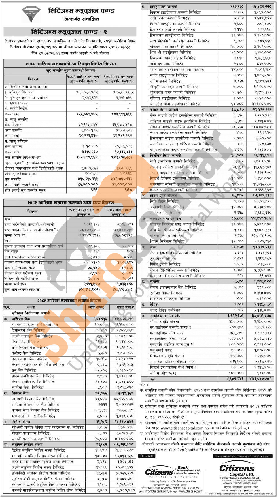 Citizens Capital Limited has published “Citizens Mutual Fund - 2” Net Assets Value (NAV) till Ashwin, 2082.