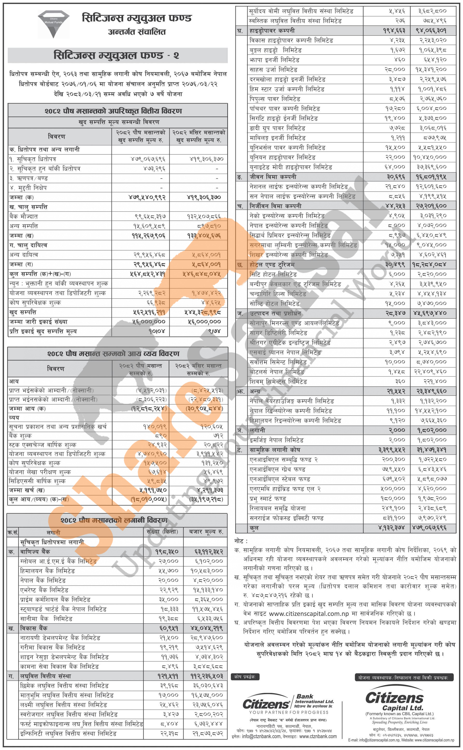 Citizens Capital Limited has published “Citizens Mutual Fund - 2” Net Assets Value (NAV) till Poush, 2082.
