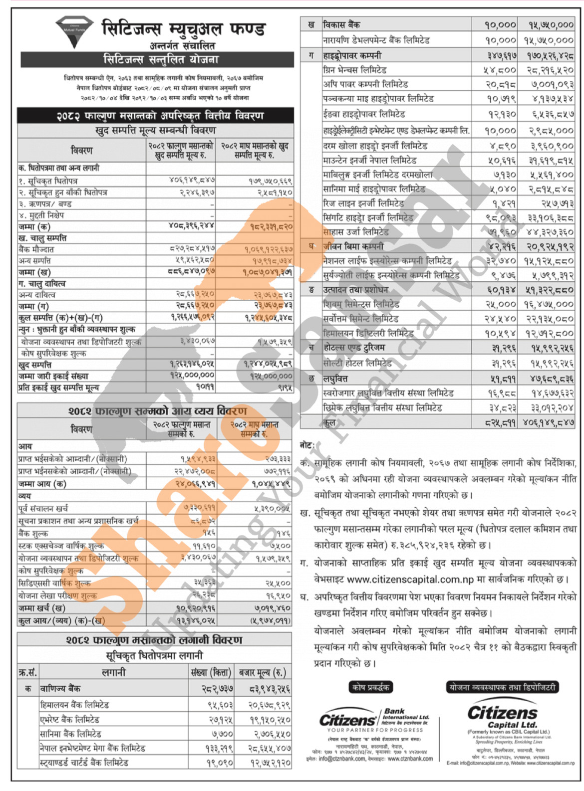 Citizens Capital Limited has published “Citizens Santulit Yojana” Net Assets Value (NAV) till Falgun, 2082.