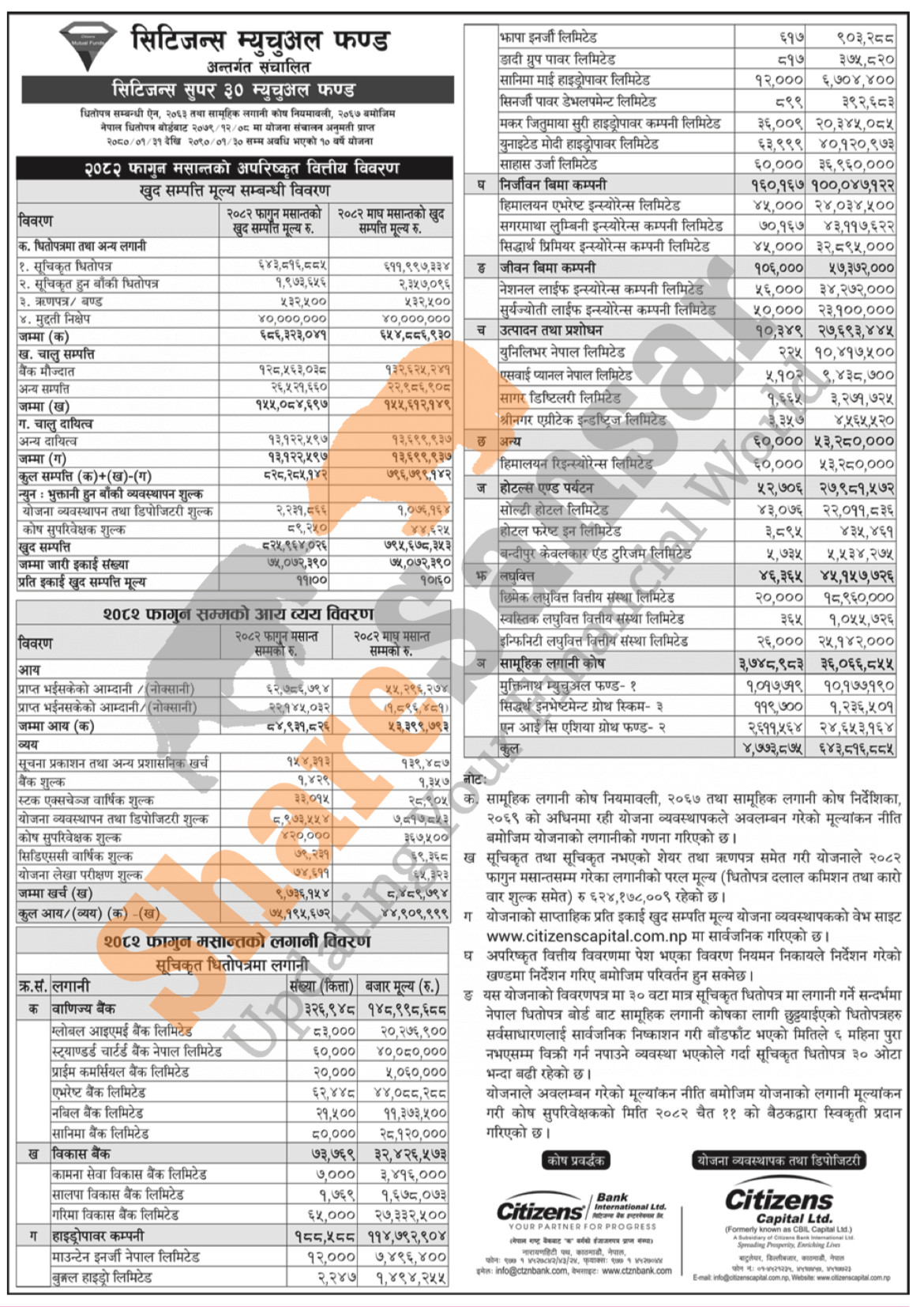Citizens Capital Limited has published “Citizens Super 30 Mutual Fund” Net Assets Value (NAV) till Falgun, 2082.