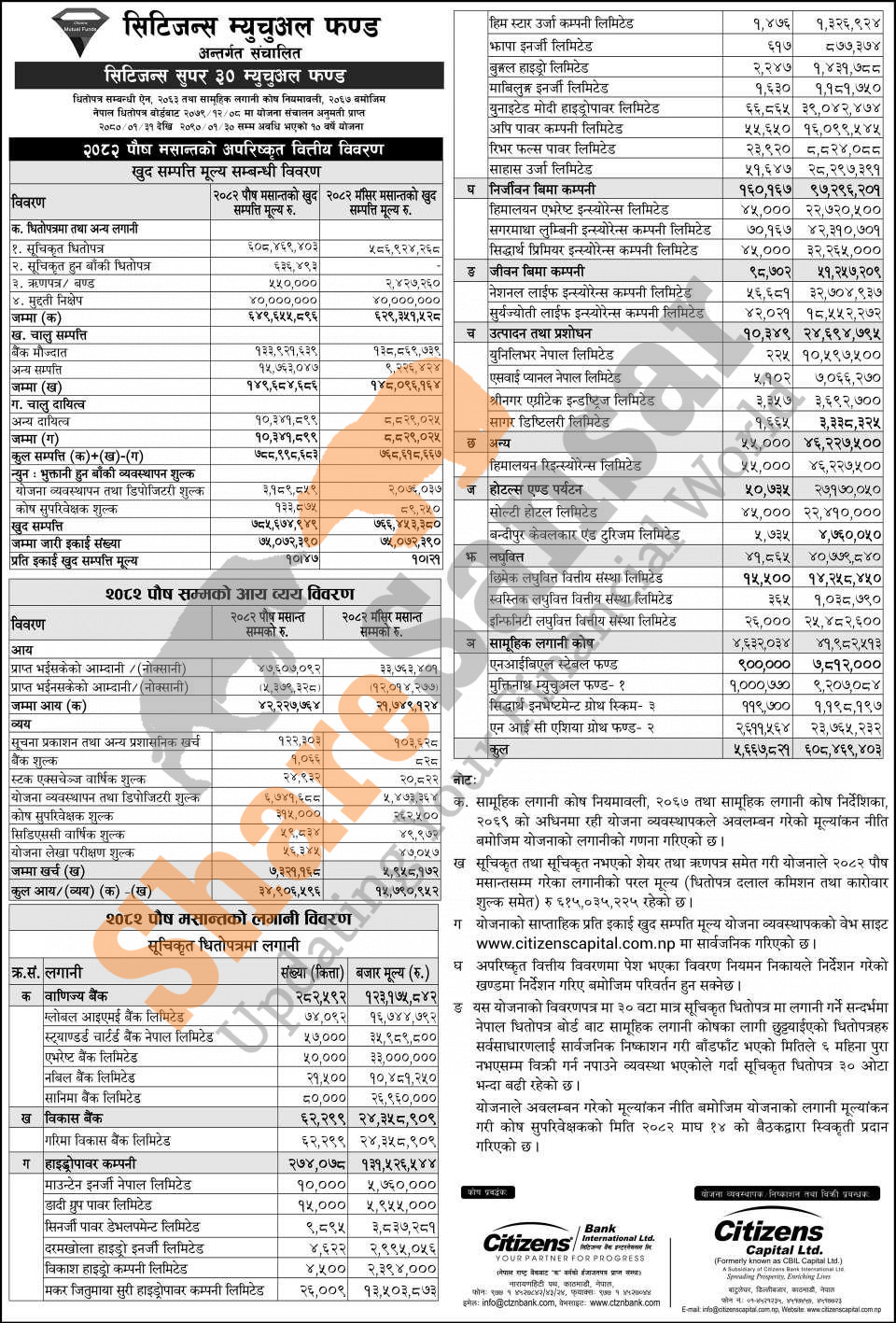 Citizens Capital Limited has published “Citizens Super 30 Mutual Fund” Net Assets Value (NAV) till Poush, 2082.