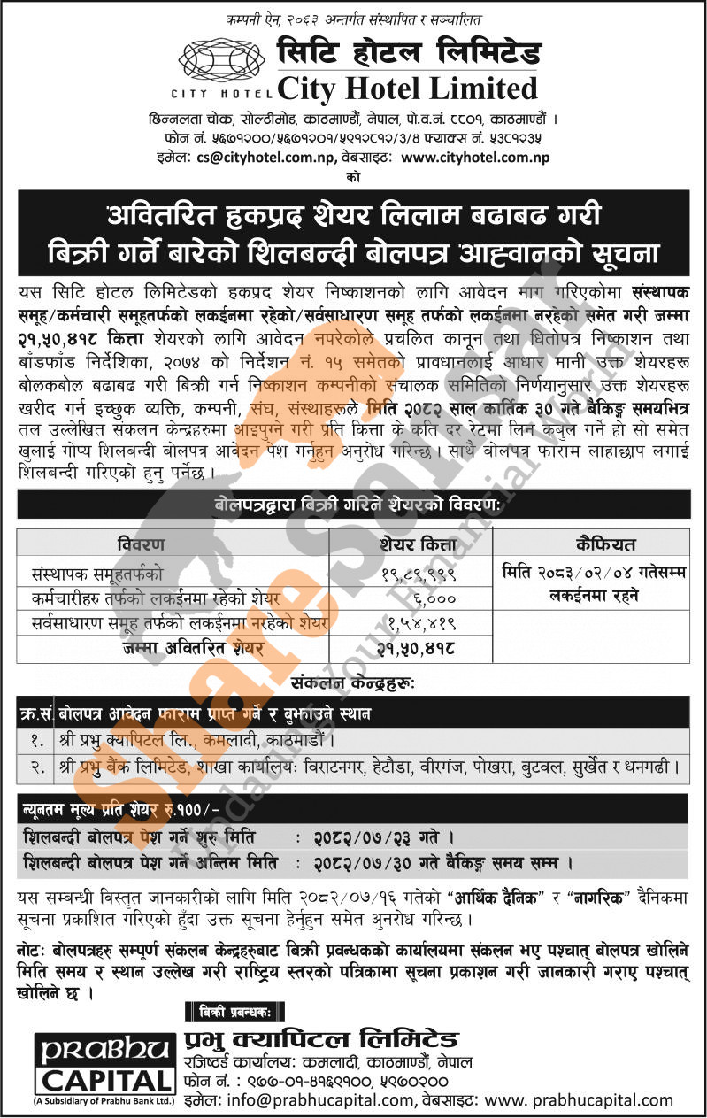City Hotel Limited has published a notice regarding the auction of 21,50,418 units of unsold promoters, employees and ordinary lock-in shares and also listed its application collection and payment deposit centers.