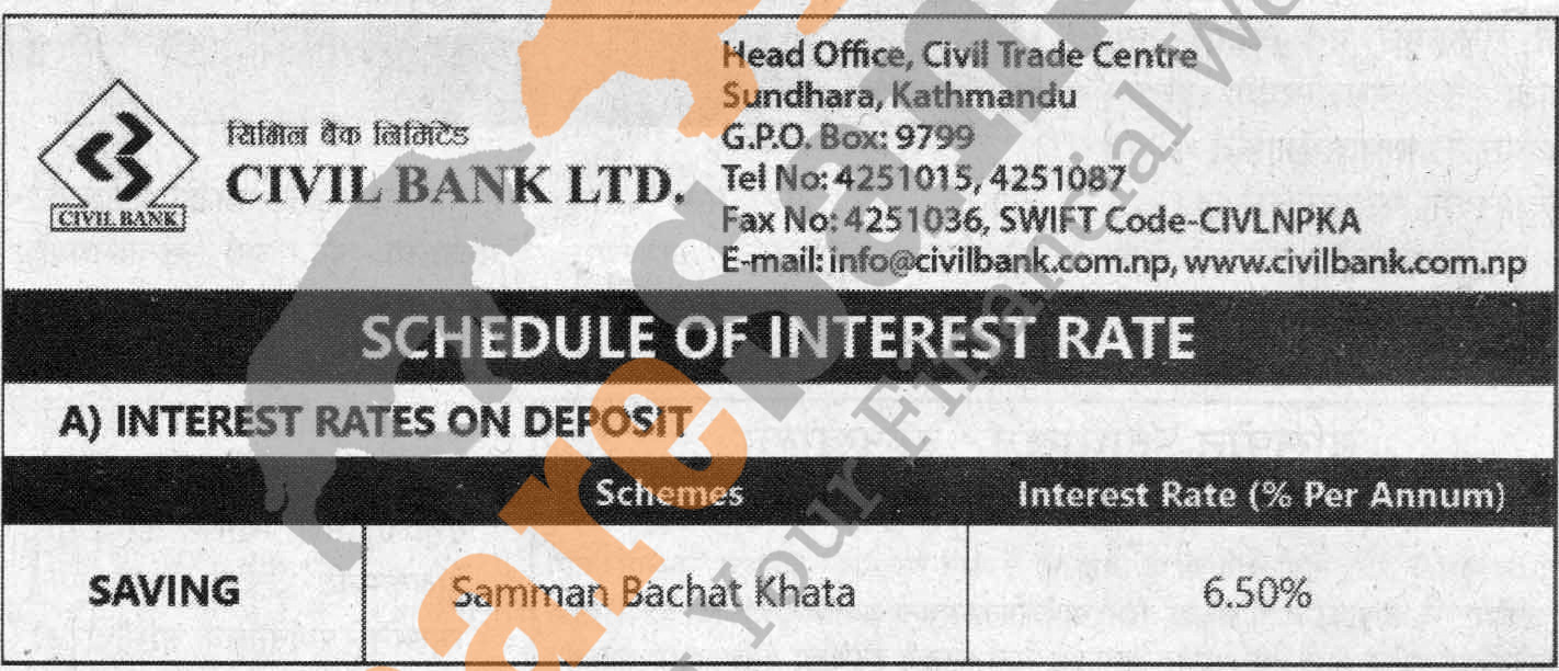 Civil Bank Limited has published a notice regarding new interest rate.