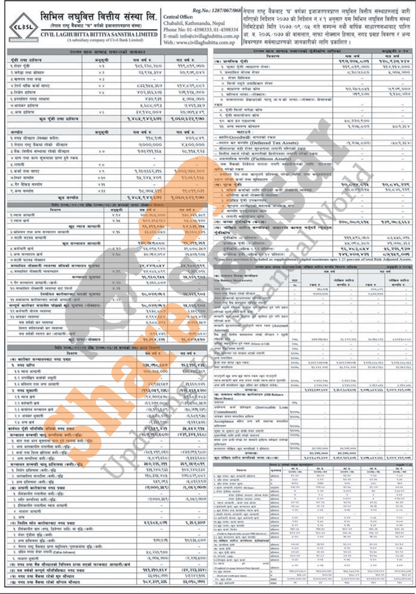 Civil Laghubitta Bittiya Sanstha Limited has published its annual financial highlights of the fiscal year 2076/77.