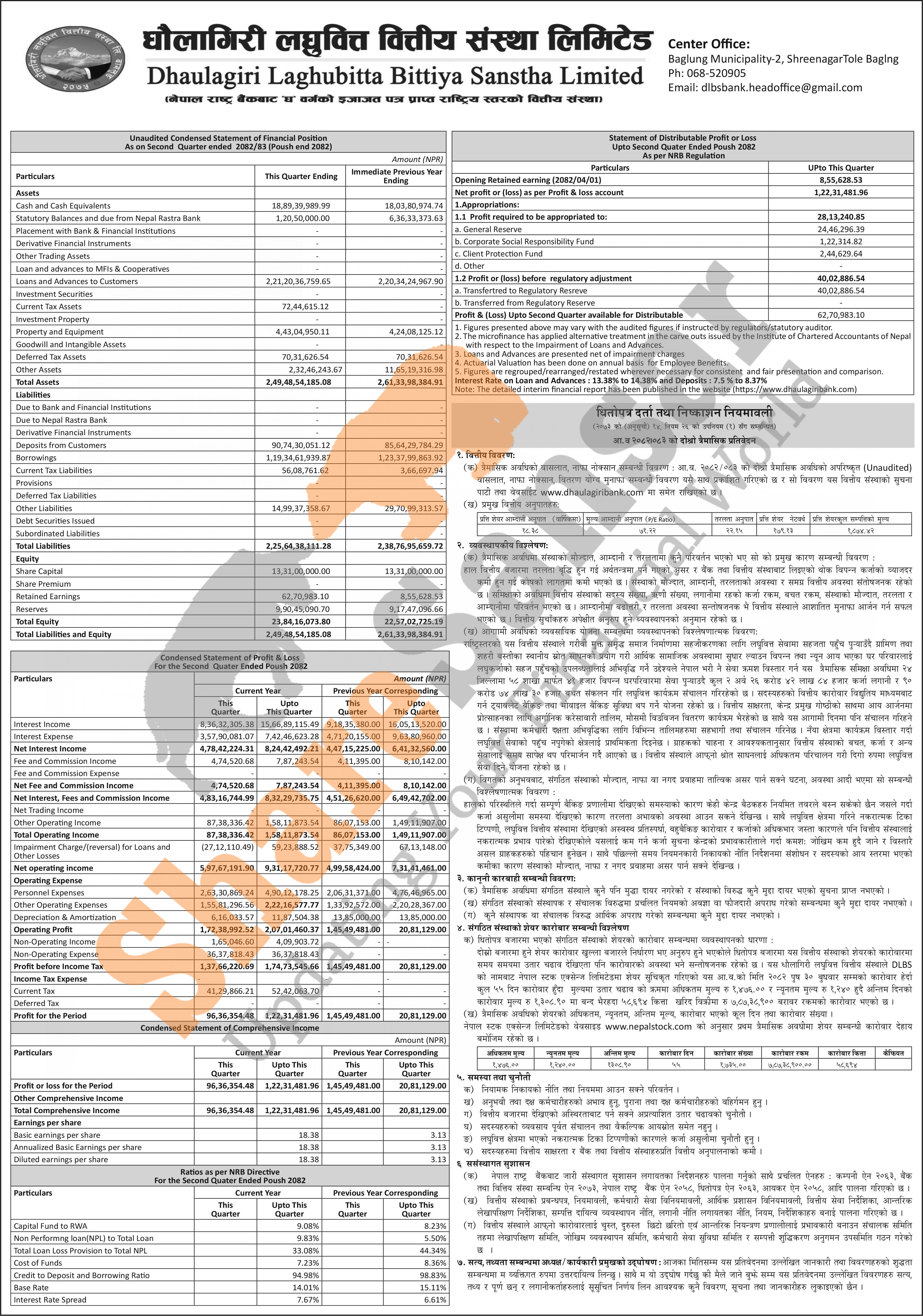 Dhaulagiri Laghubitta Bittiya Sanstha Limited has posted a net profit of Rs 12.23 million and published its 2nd quarter company analysis of the fiscal year 2082/83.