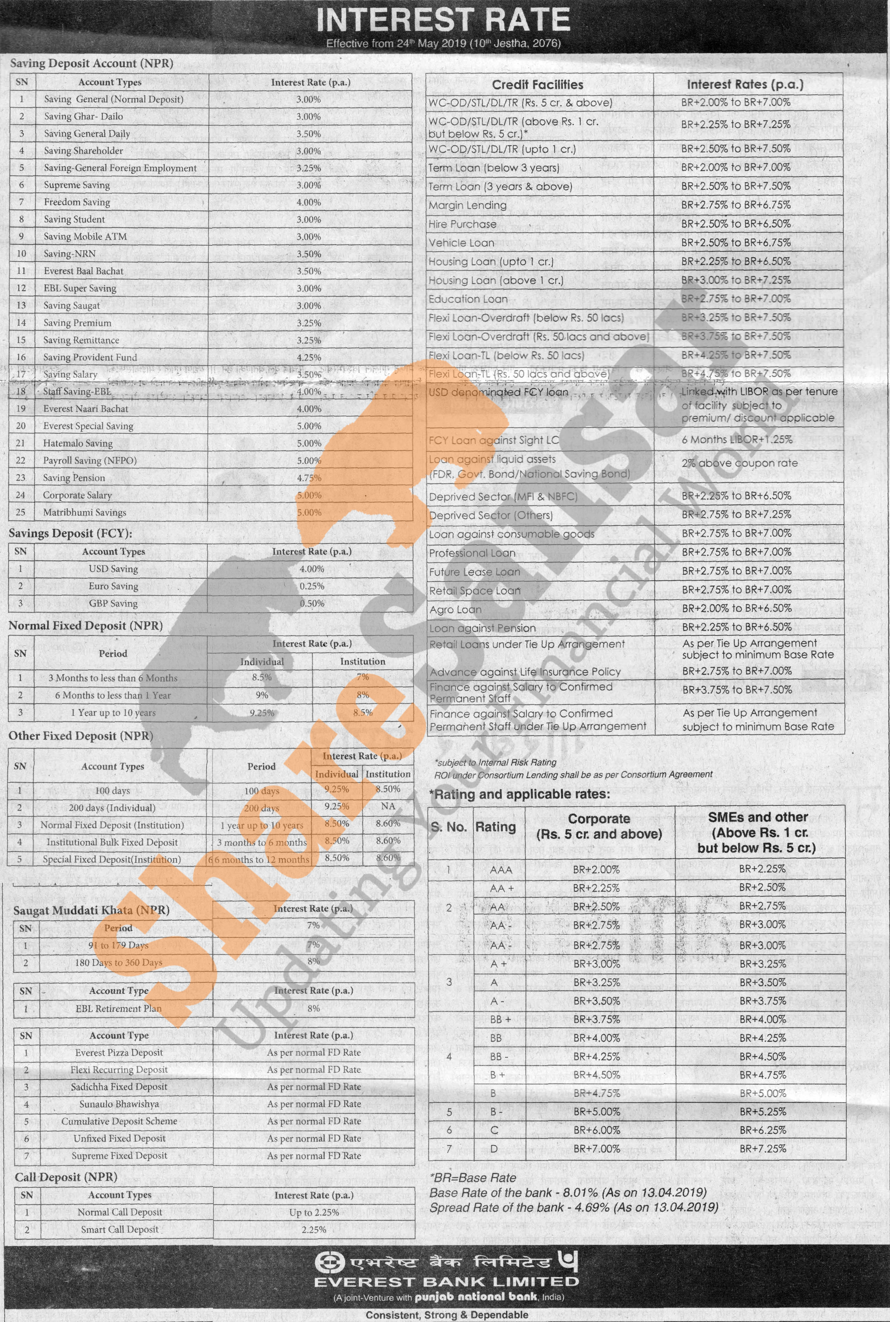 Everest Bank Limited has published a notice regarding new interest rate and its effective from 10th Jestha, 2076.
