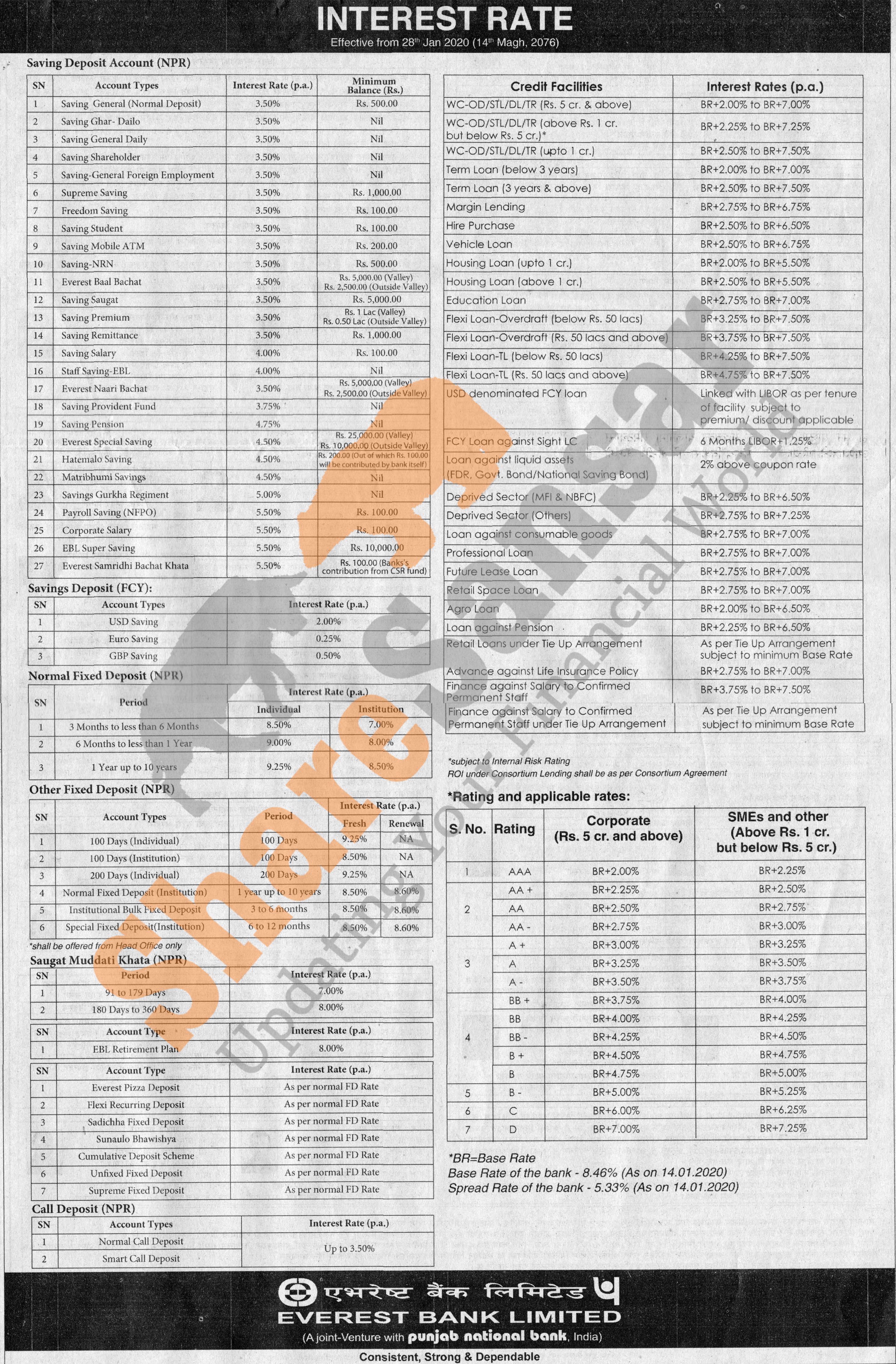 Everest Bank Limited has published a notice regarding new interest rate and its effective from 14th Poush, 2076.