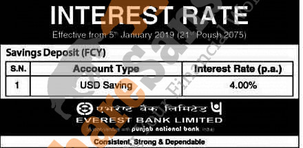Everest Bank Limited has published a notice regarding new interest rate and its effective from 21st Poush, 2075.
