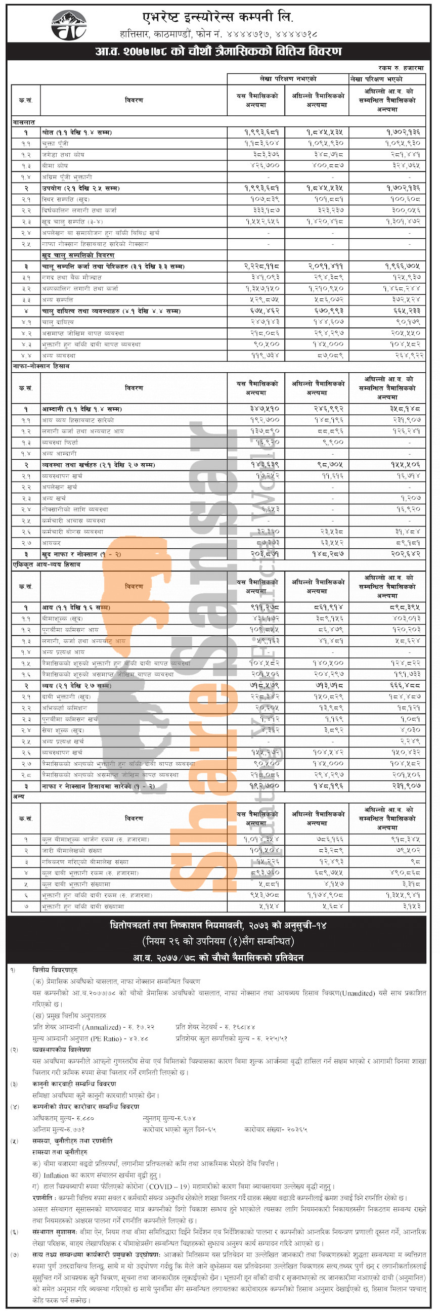 Everest Insurance Company Limited has posted a net profit of Rs 203.87 million and published its 4th quarter company analysis of the fiscal year 2077/78.