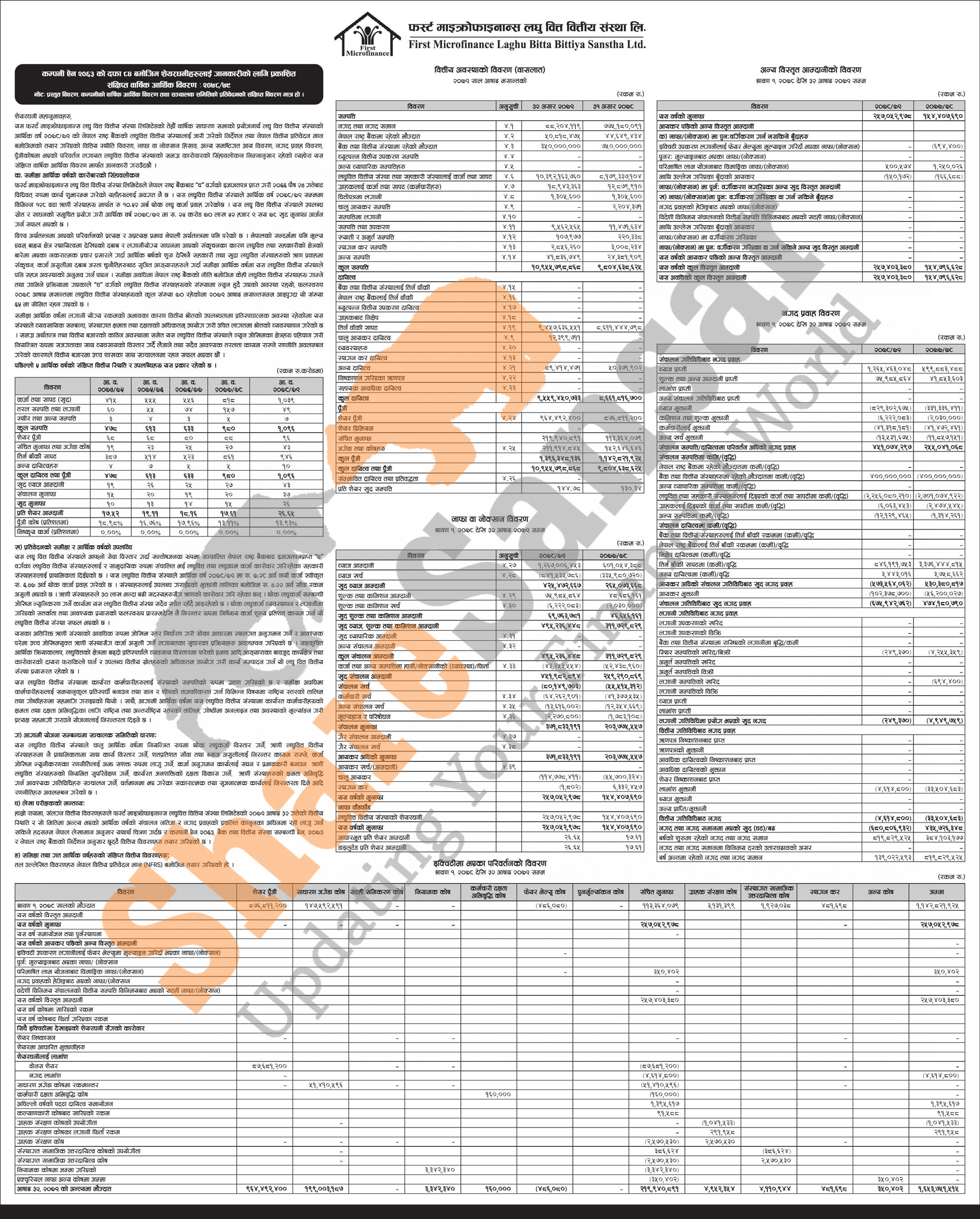 First Microfinance Laghubitta Bittiya Sanstha Limited has published its annual financial highlights of the fiscal year 2078/79.