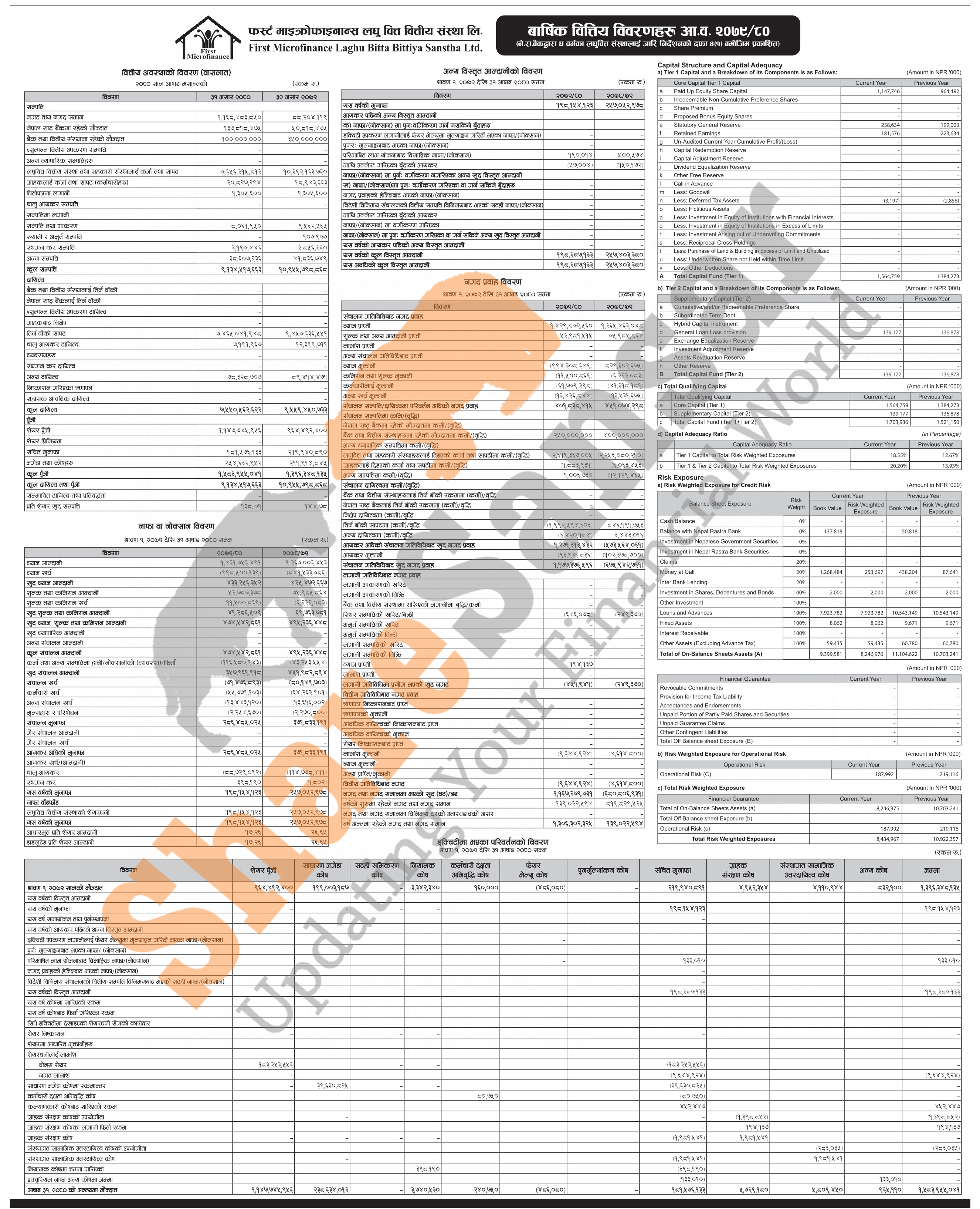 First Microfinance Laghubitta Bittiya Sanstha Limited has published its annual financial highlights of the fiscal year 2079/80.
