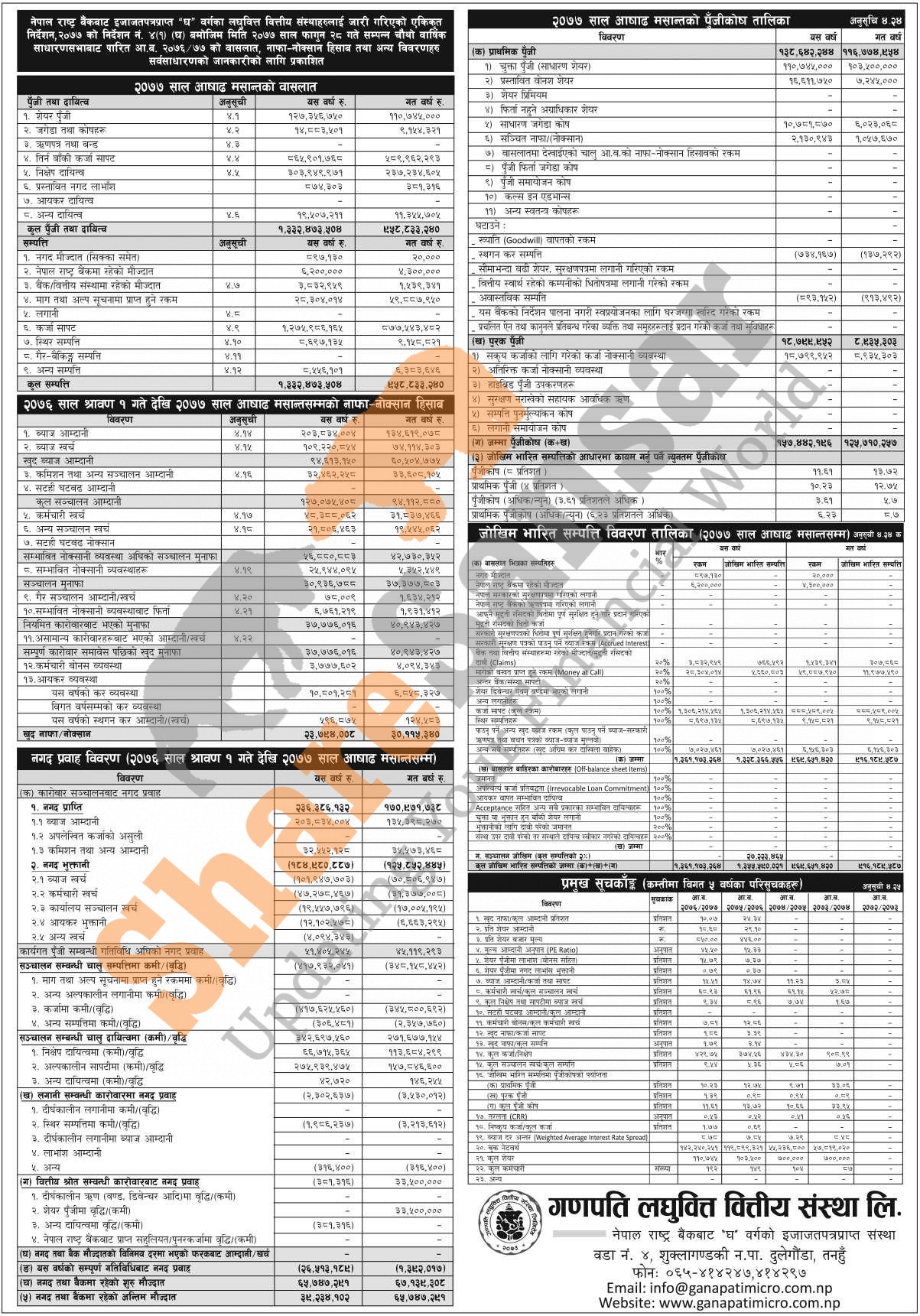 Ganapati Laghubitta Bittiya Sanstha Limited has published its annual financial highlights of the fiscal year 2076/77.