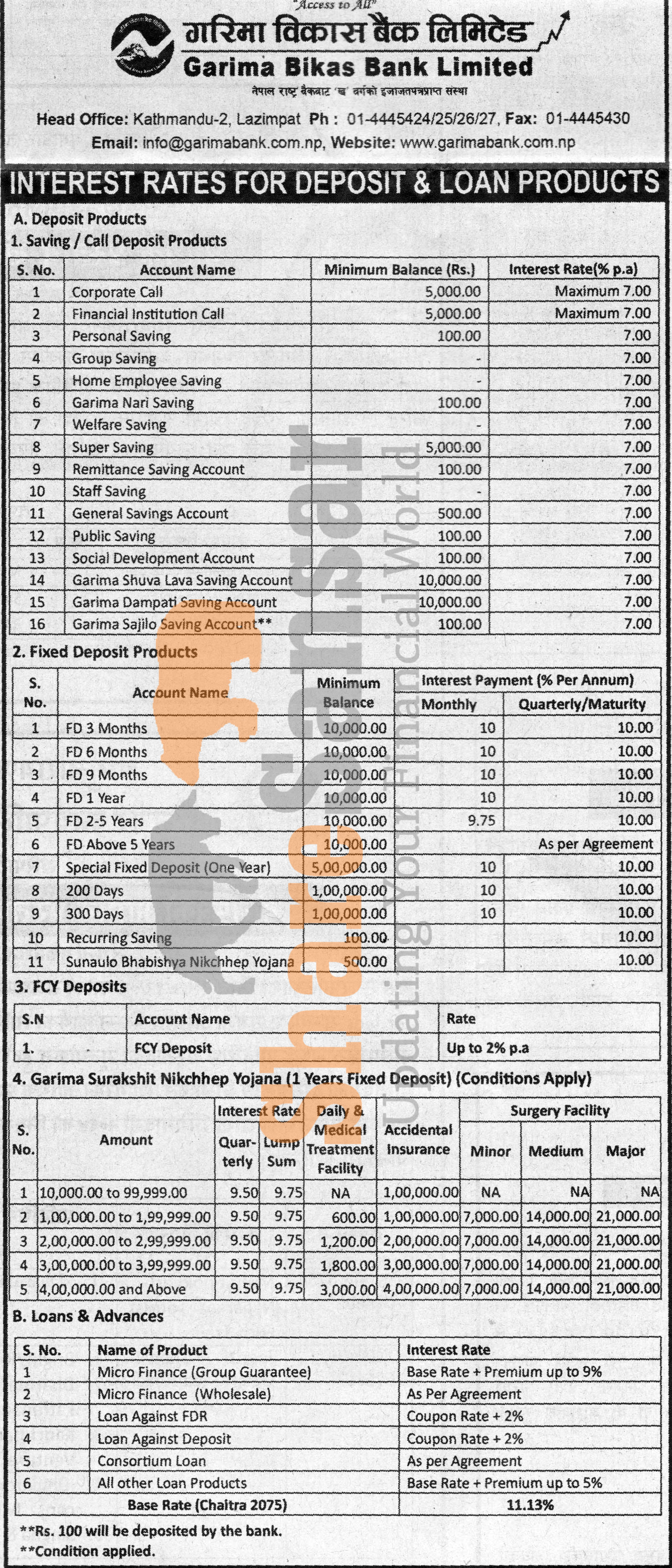 Garima Bikas Bank Limited has published a notice regarding new interest rate and its effective from 27th Baishakh, 2076.