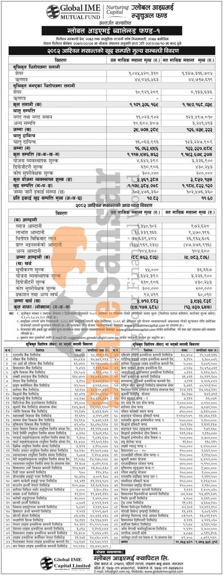 Global IME Capital Limited has published "Global IME Balanced Fund-1" Net Assets Value (NAV) till Ashwin, 2082.