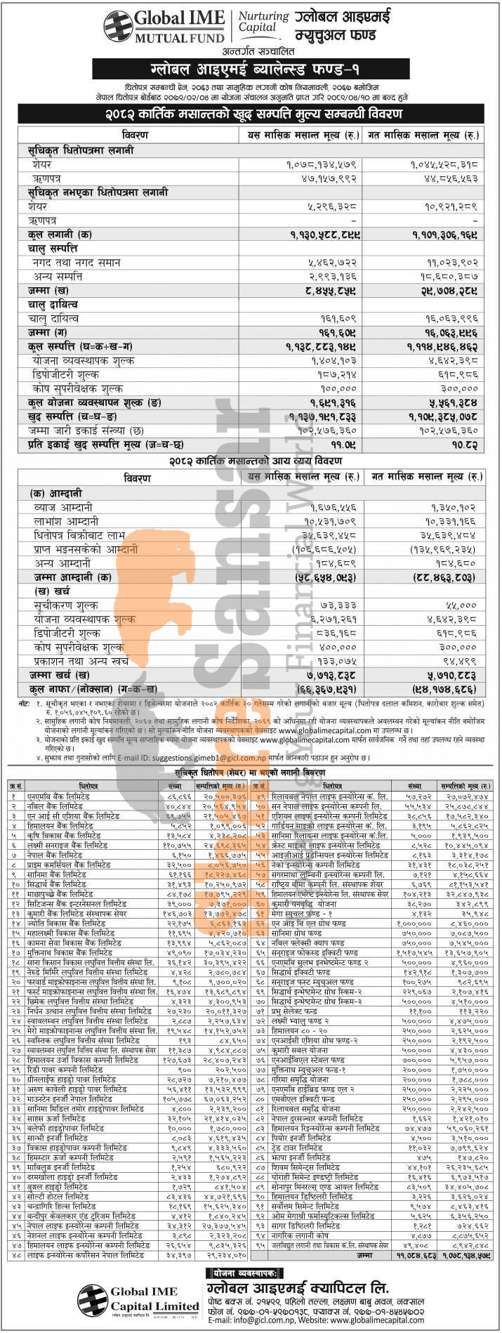 Global IME Capital Limited has published "Global IME Balanced Fund-1" Net Assets Value (NAV) till Kartik, 2082.