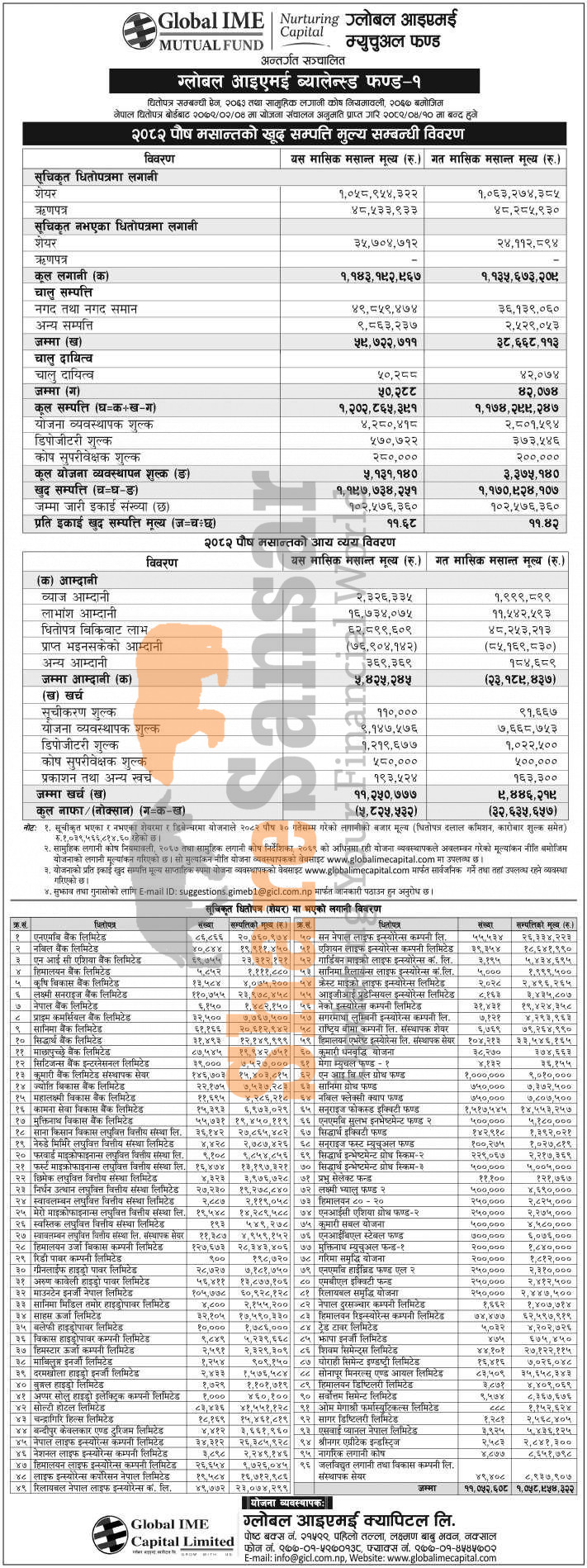 Global IME Capital Limited has published "Global IME Balanced Fund-1" Net Assets Value (NAV) till Poush, 2082.