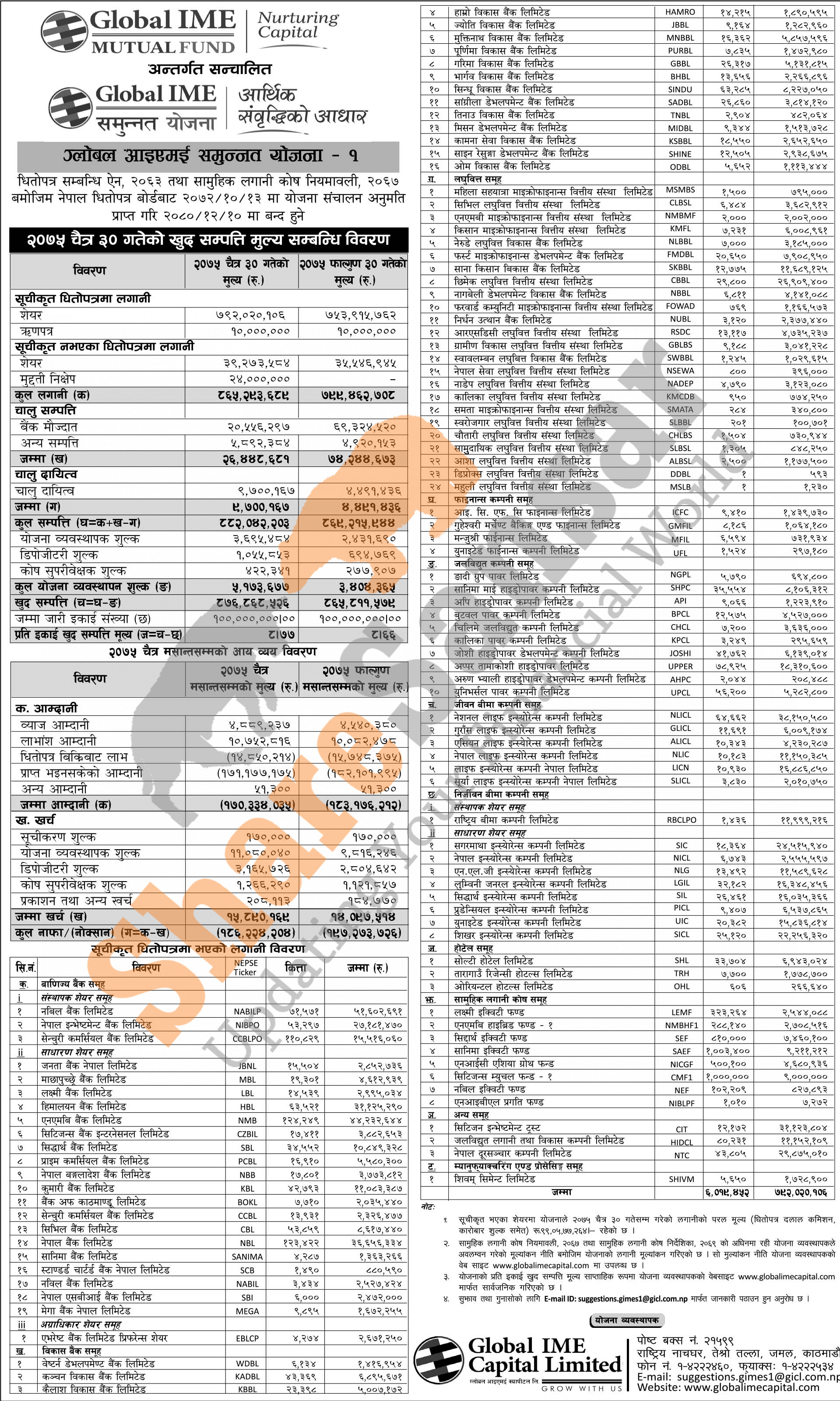 Global IME Capital Limited has published (Global IME Samunnat Scheme-1) Net Assets Value (NAV) till Chaitra, 2075.