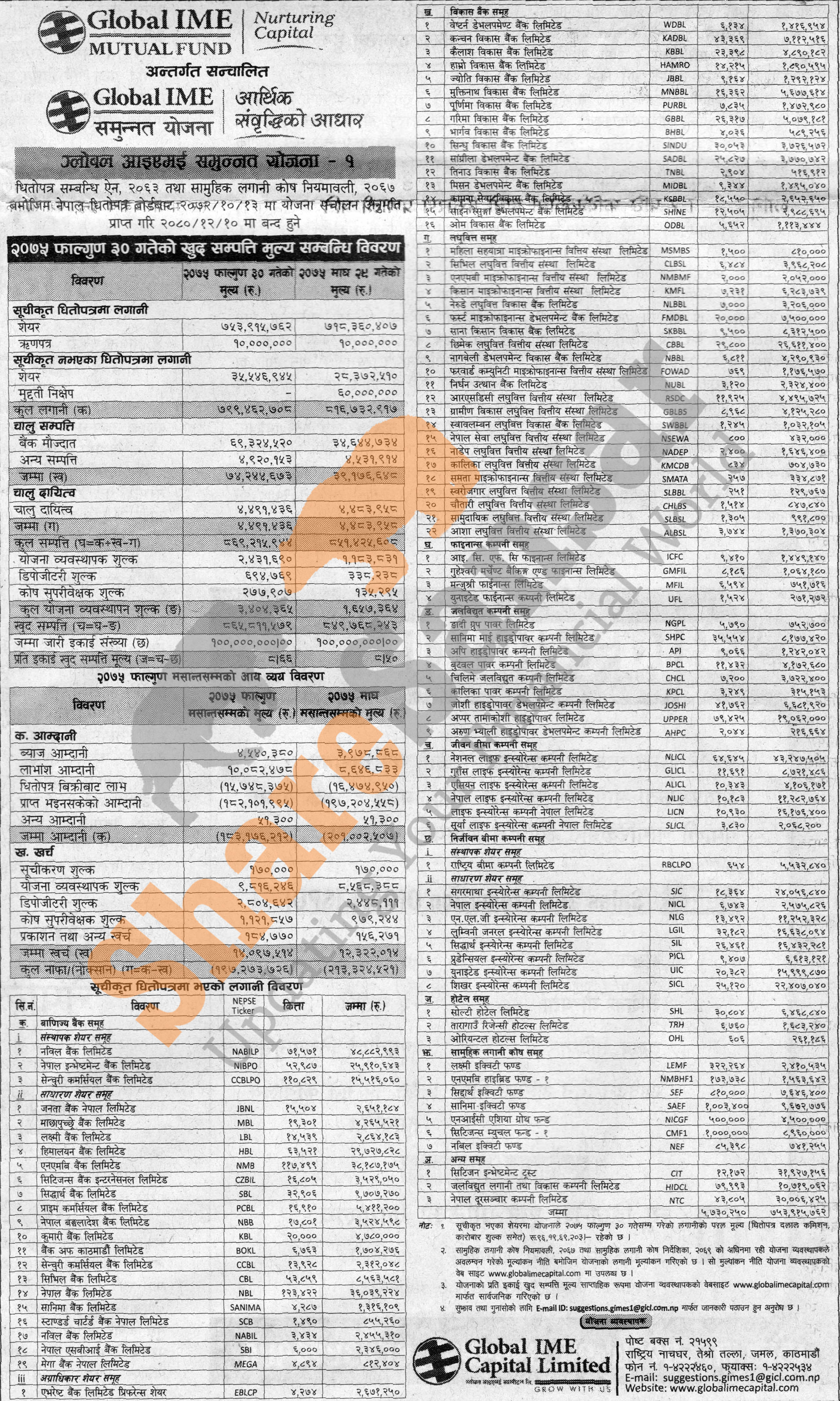 Global IME Capital Limited has published (Global IME Samunnat Scheme-1) Net Assets Value (NAV) till Falgun, 2075.