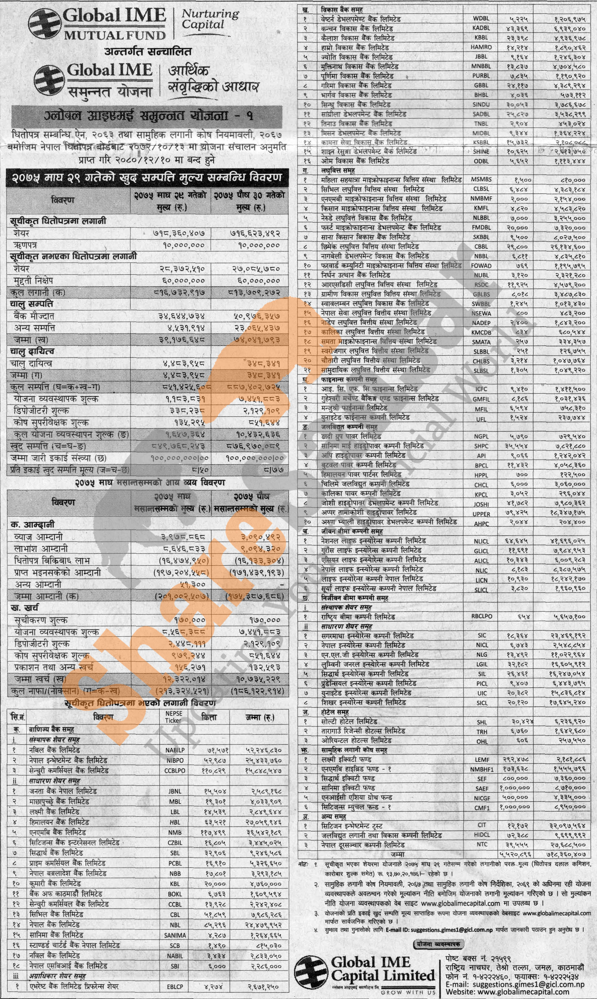 Global IME Capital Limited has published (Global IME Samunnat Scheme-1) Net Assets Value (NAV) tillMagh, 2075.