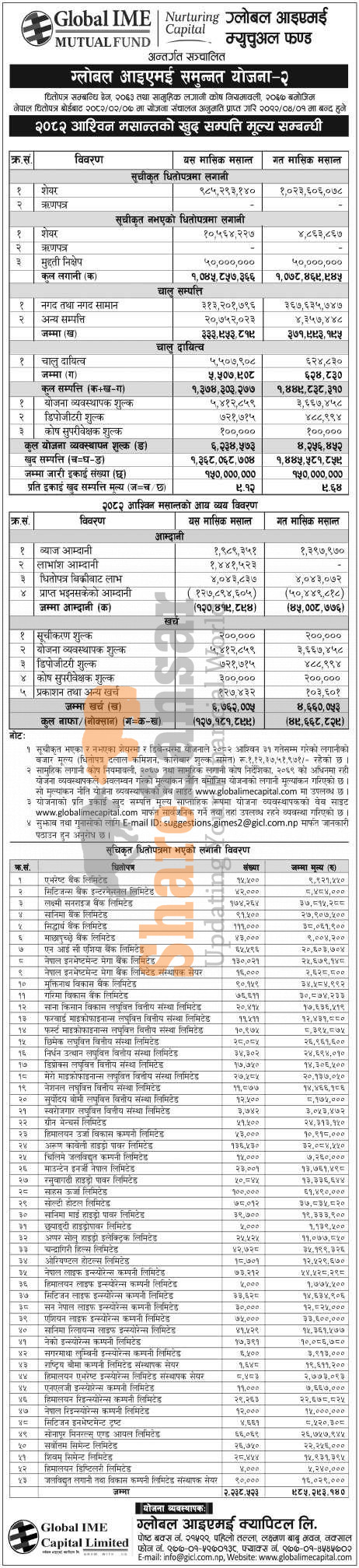 Global IME Capital Limited has published "Global IME Samunnat Yojana -II" Net Assets Value (NAV) till Ashwin, 2082.