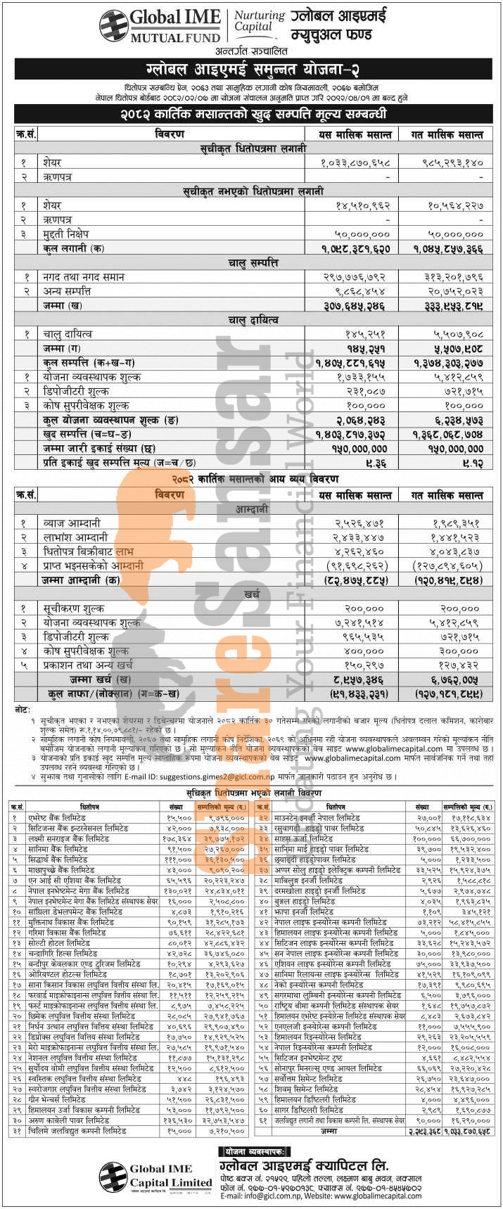 Global IME Capital Limited has published "Global IME Samunnat Yojana -II" Net Assets Value (NAV) till Kartik, 2082.