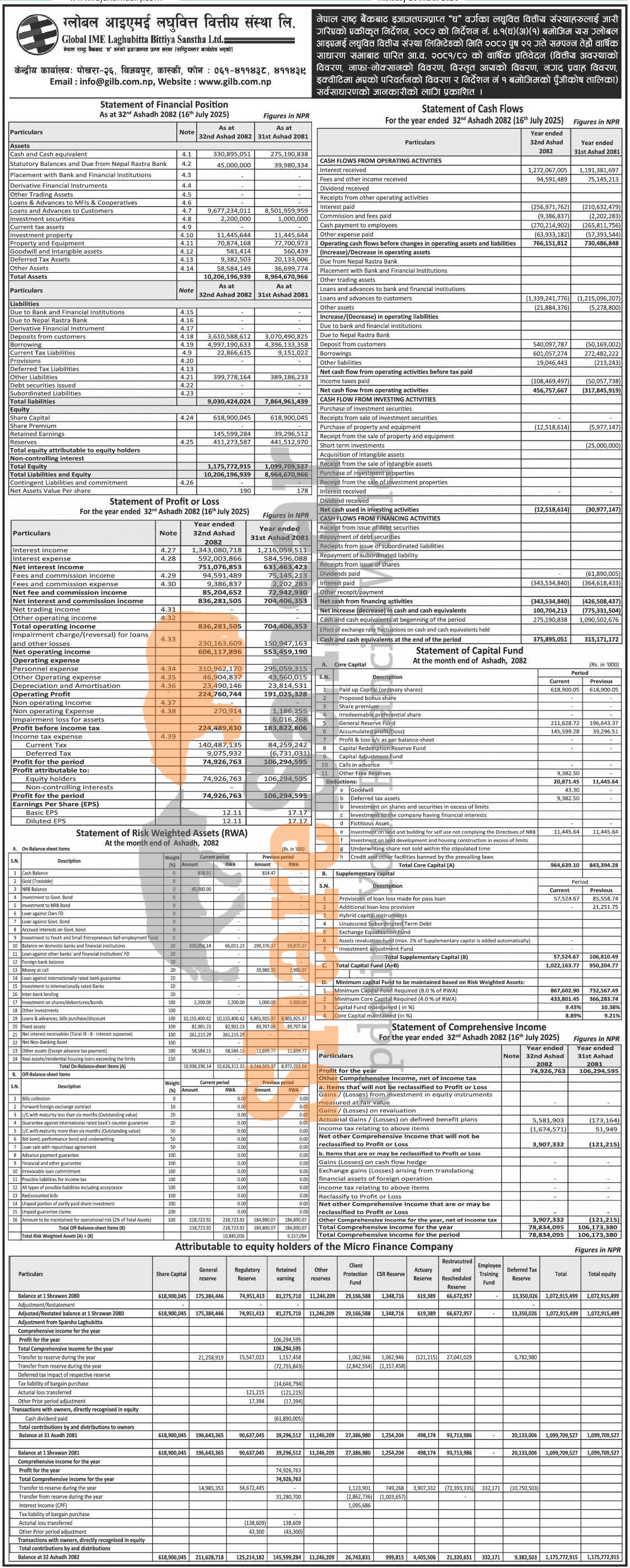 Global IME Laghubitta Bittiya Sanstha Limited has published its annual financial statement of the fiscal year 2081/82.