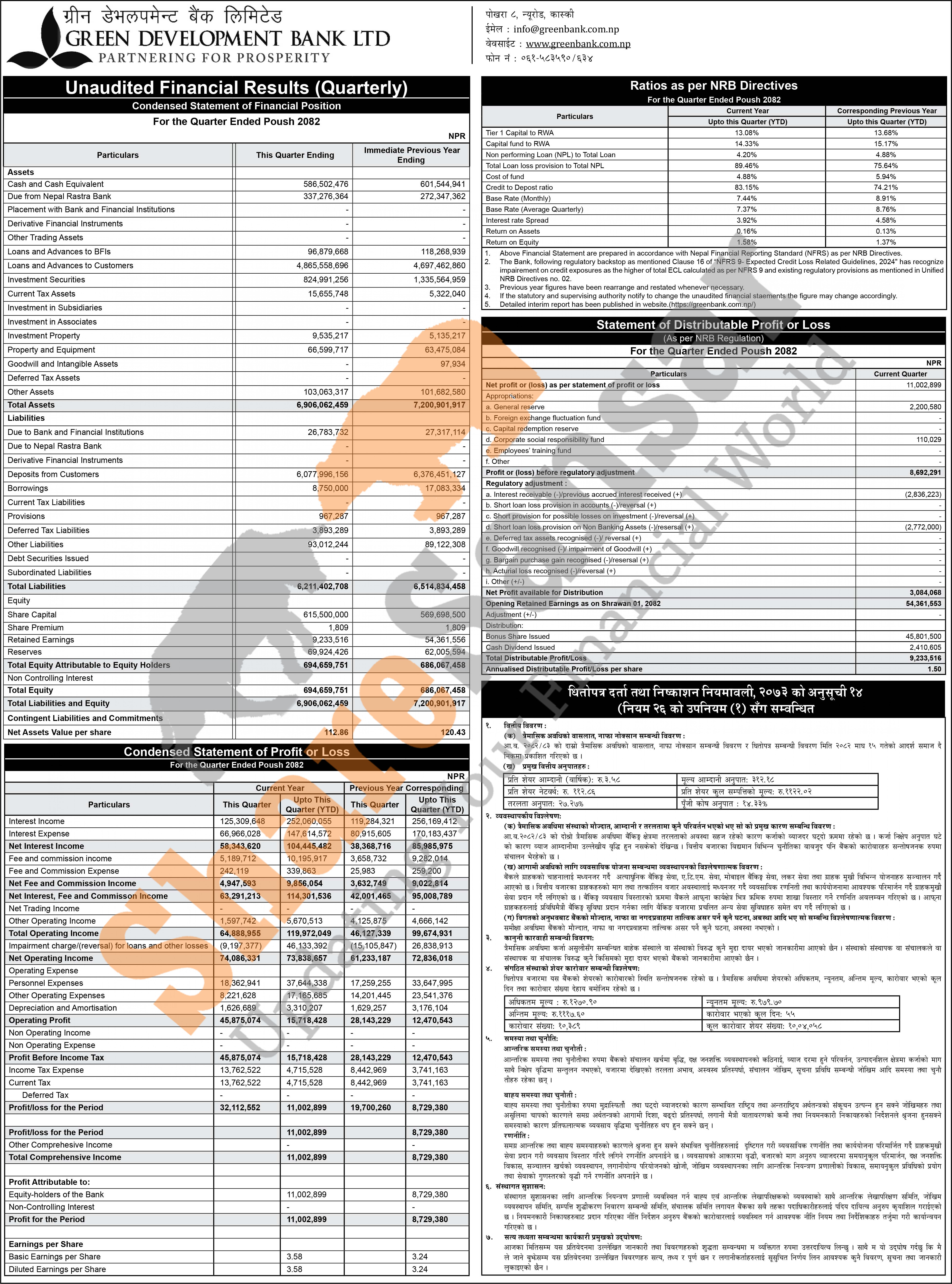 Green Development Bank Limited has posted a net profit of Rs 11 million and published its 2nd quarter company analysis of the fiscal year 2082/83.