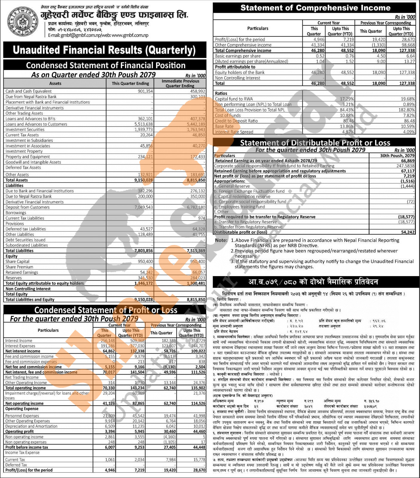 Guheswori Merchant Banking & Finance Limited has posted a net profit of Rs 7.21 million and published its 2nd quarter company analysis of the fiscal year 2079/80.