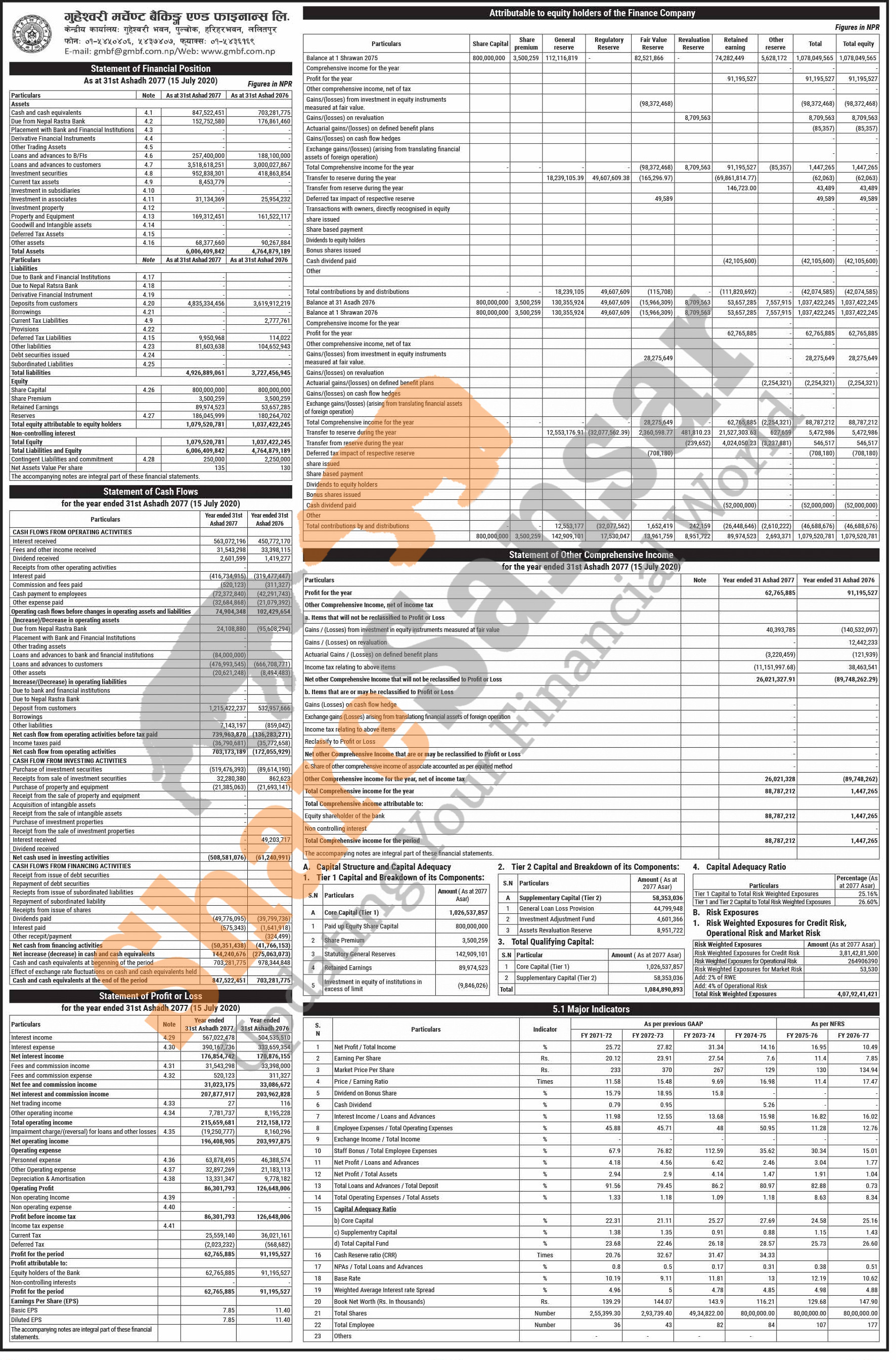 Guheswori Merchant Banking & Finance Limited has published its annual financial highlights of the fiscal year 2076/77.