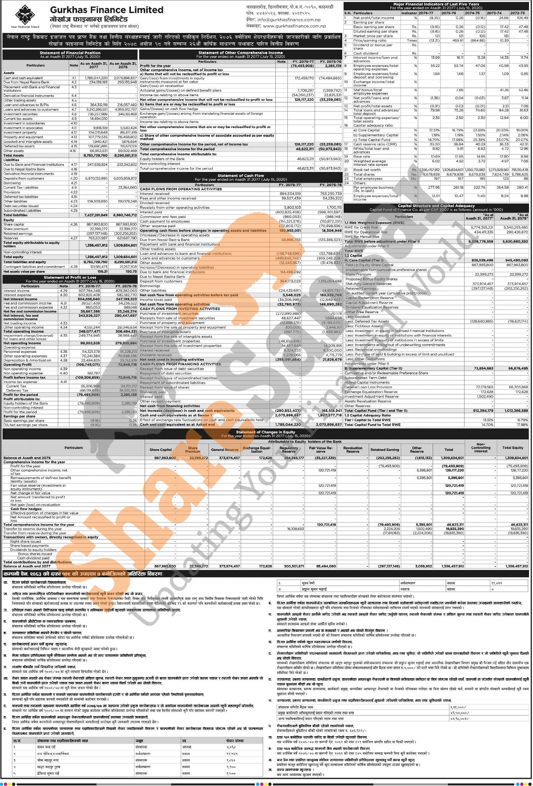 Gurkhas Finance Limited has published its annual financial highlights of the fiscal year 2076/77.